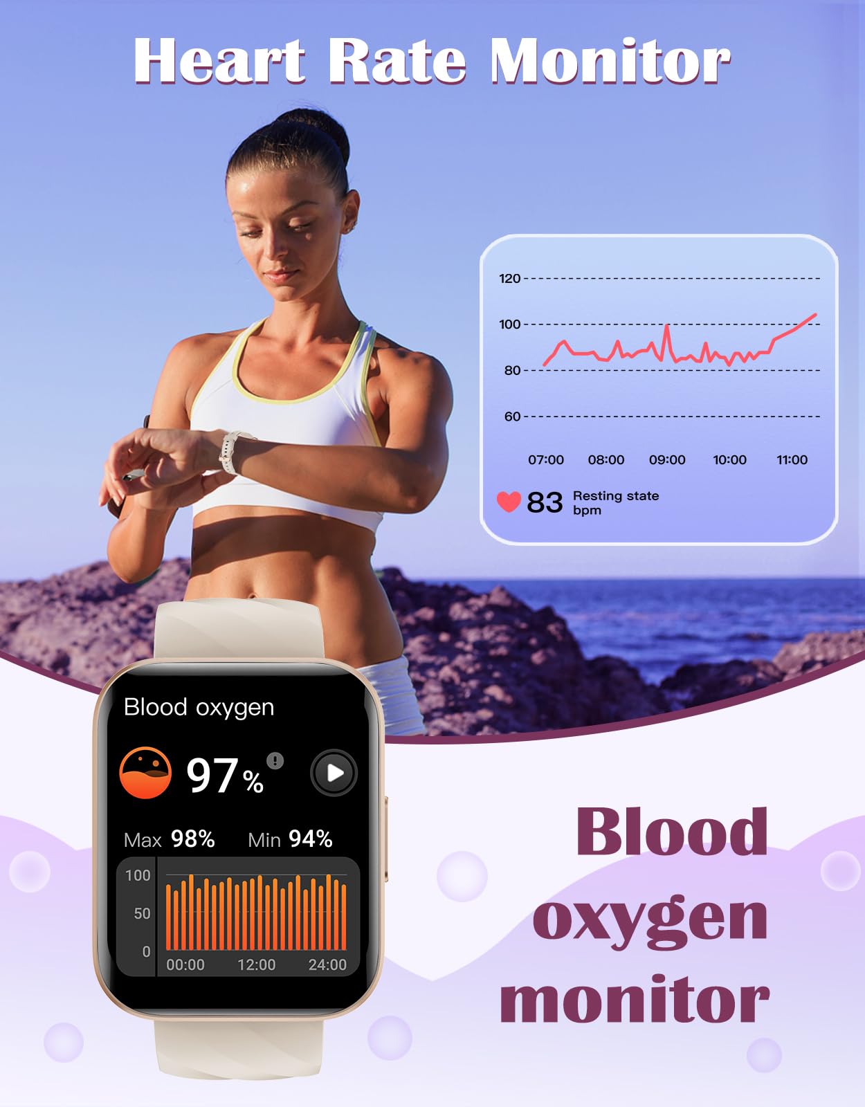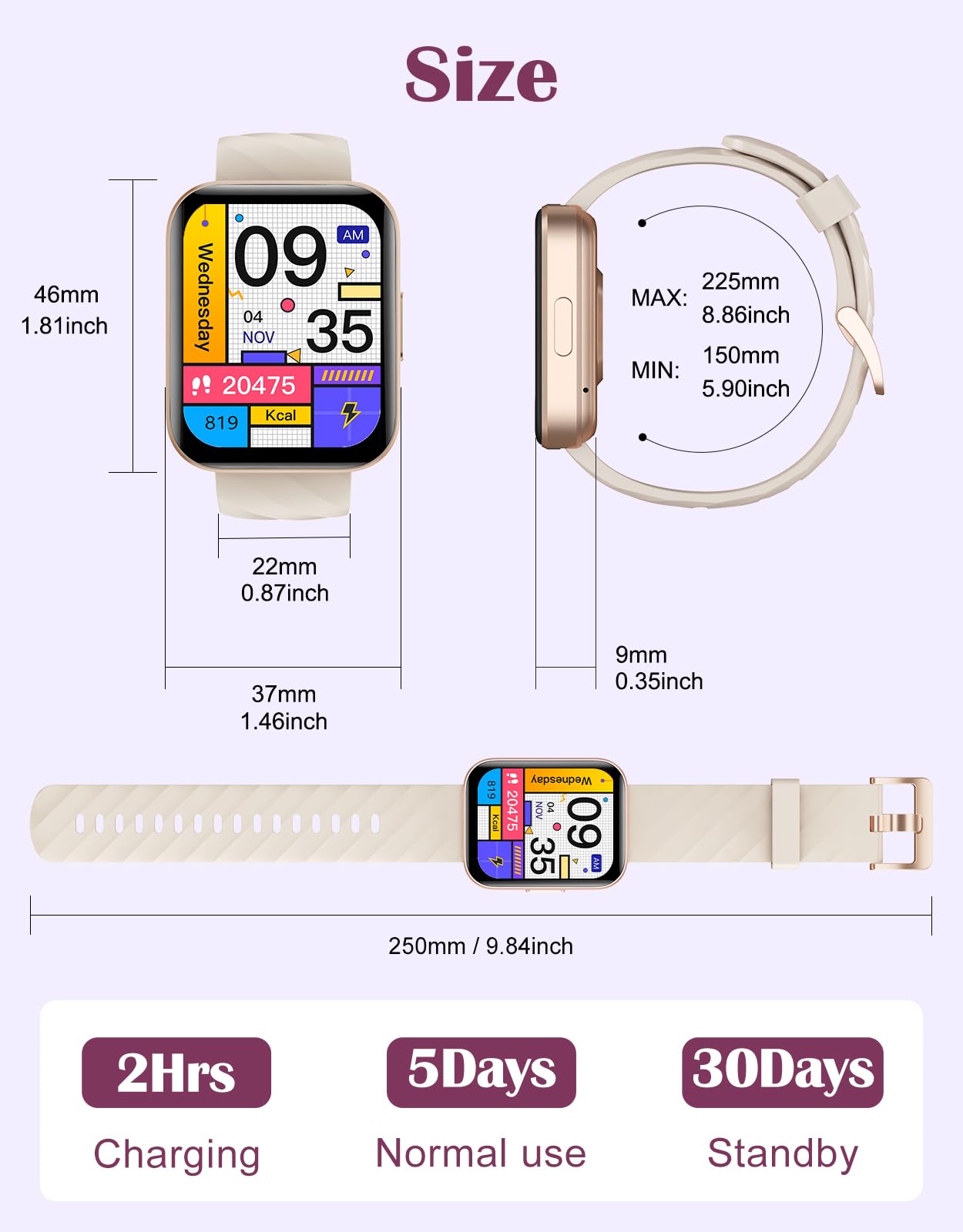 【More Useful Functions】You can enjoy more practical features, such as stopwatch, timer, calculator, alarm clocks, voice assistant, music control, female cycle tracking, etc., it can be a smart assistant and an essential companion for a healthy life.