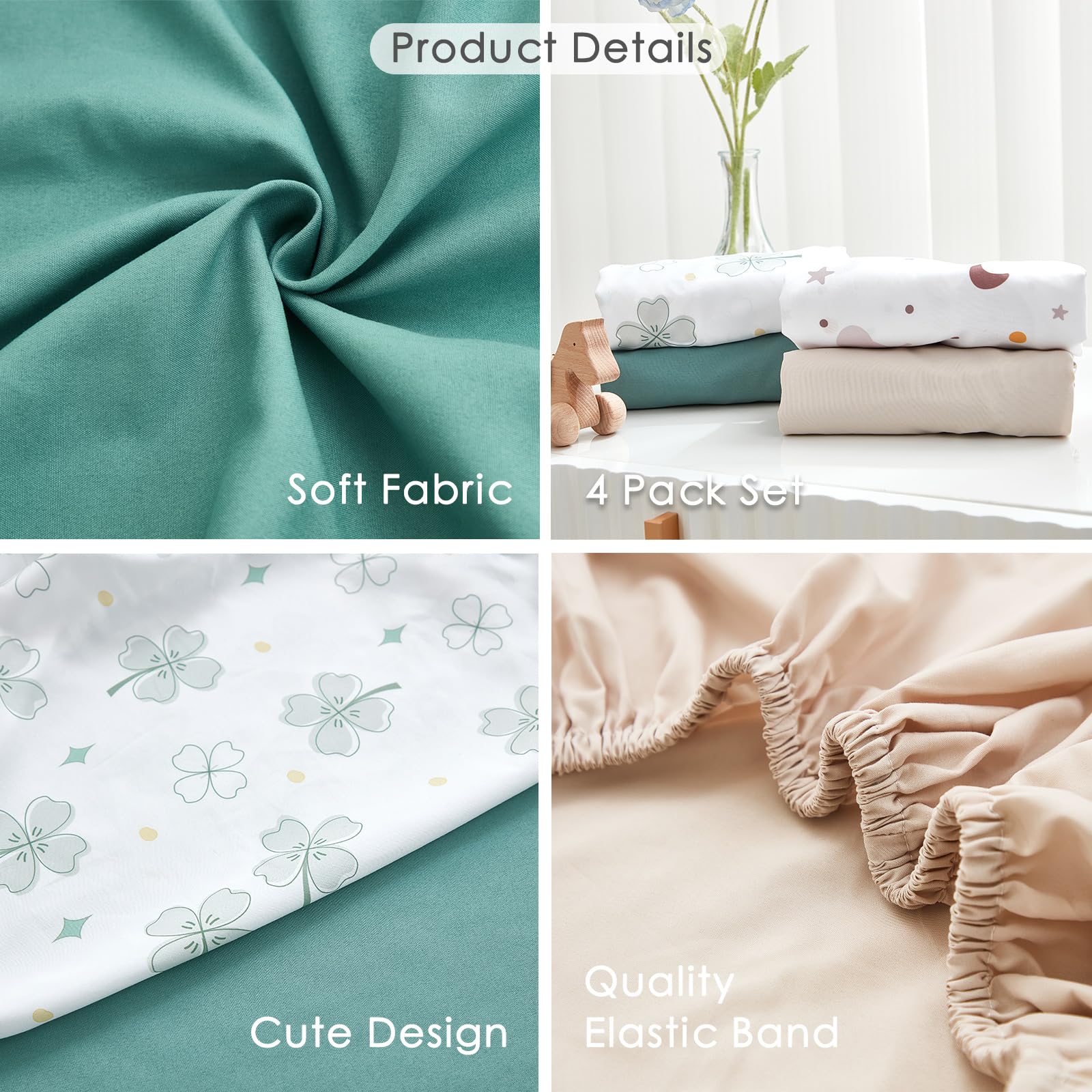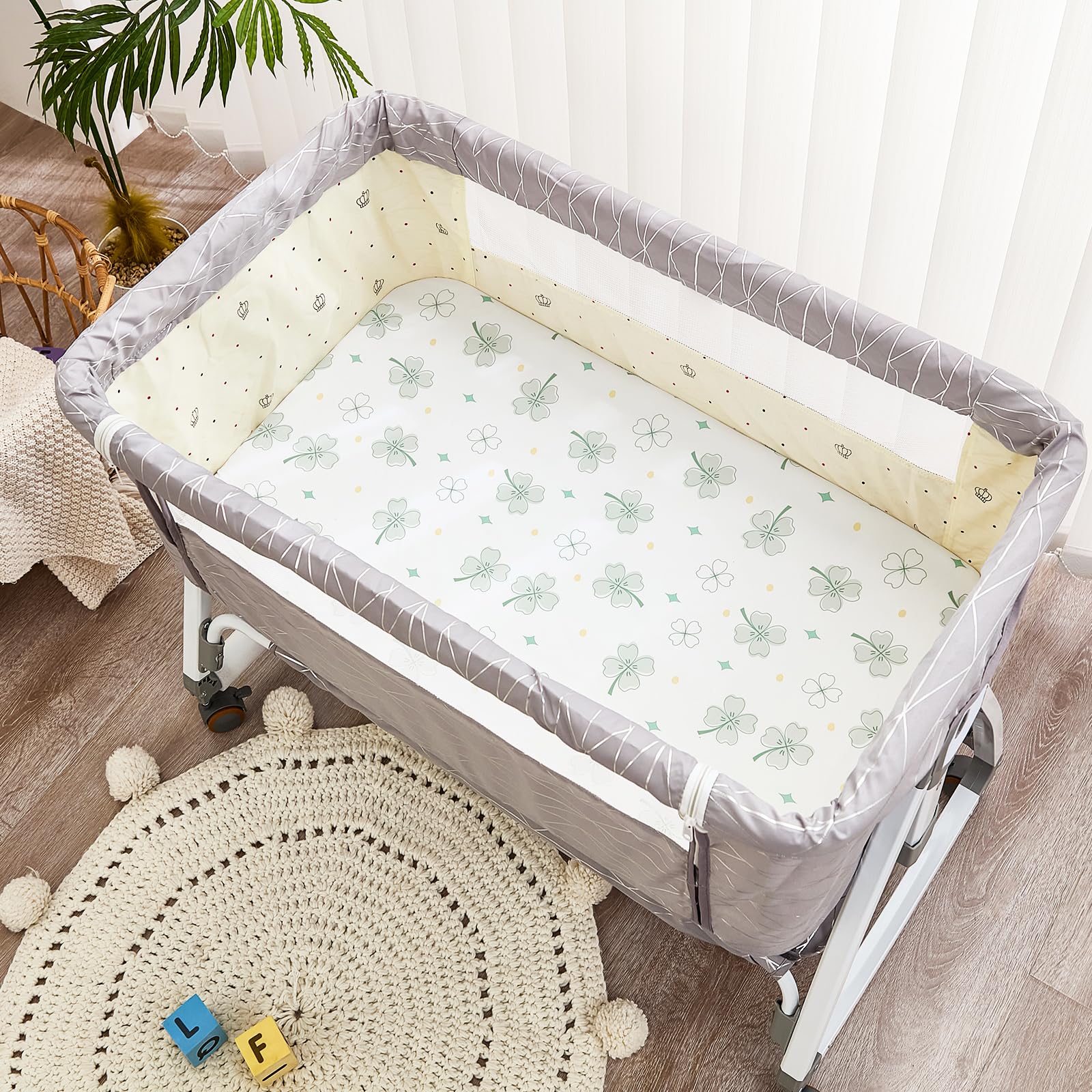 DESIGNED FOR LOVE - Our 4 pack bedside bassinet sheet set includes two solid color and two designed cute pattern(clover & moon star), they will decorate the bassinet and provide you and your baby a good mood every day, suitable for both baby boy and baby girl