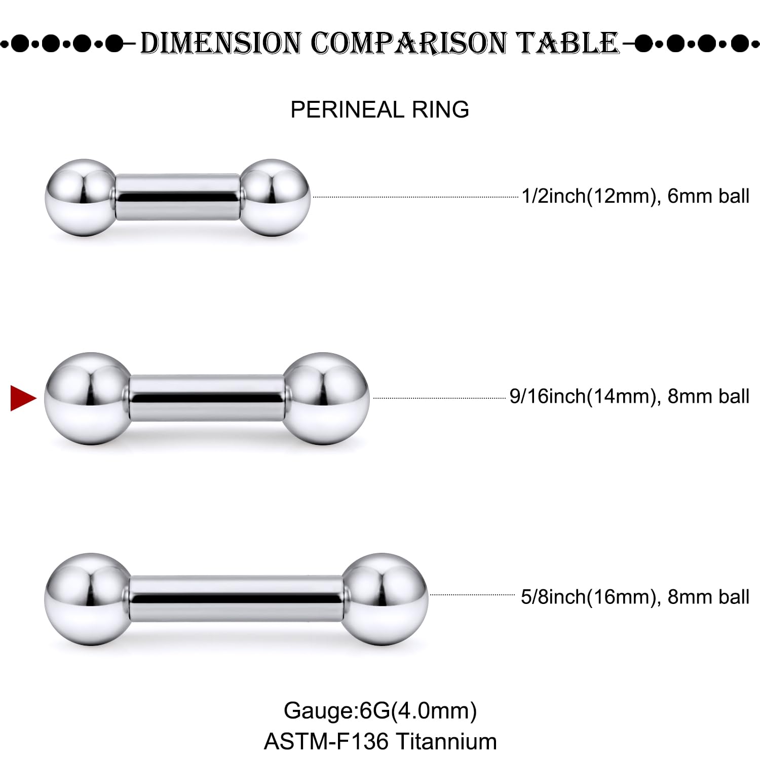 [Size]: 6 Gauge (4MM), Length:14MM, Ball size: 8MM.