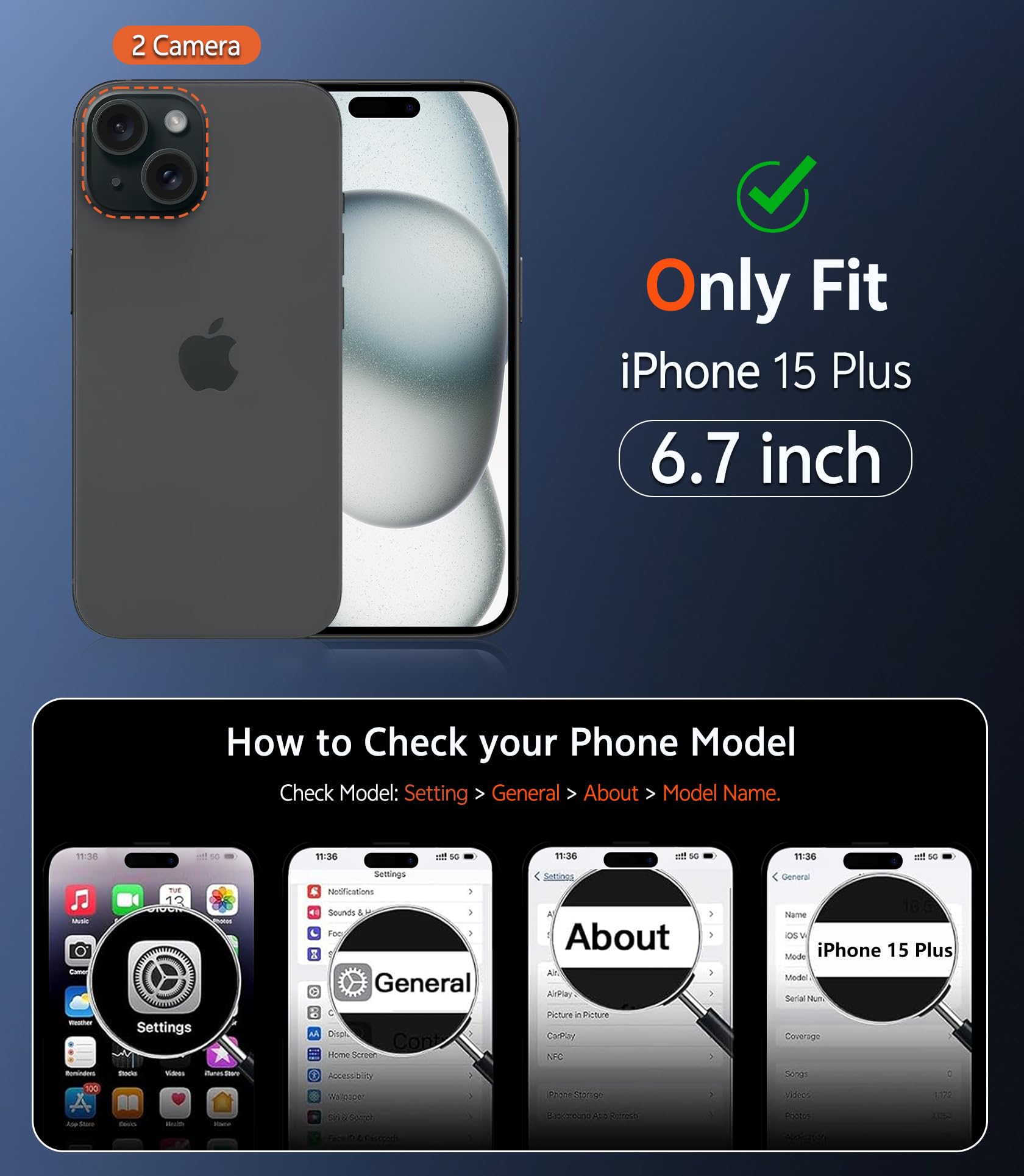 Raised Camera & Screen Protection: The screen 0.05 inch (1.2mm) raised edge and the camera lens 0.1 inch (2.5mm) raised edge of our iPhone 15 plus clear case can prevent daily scratches when the phone is placed down on a table. We focus on every detail