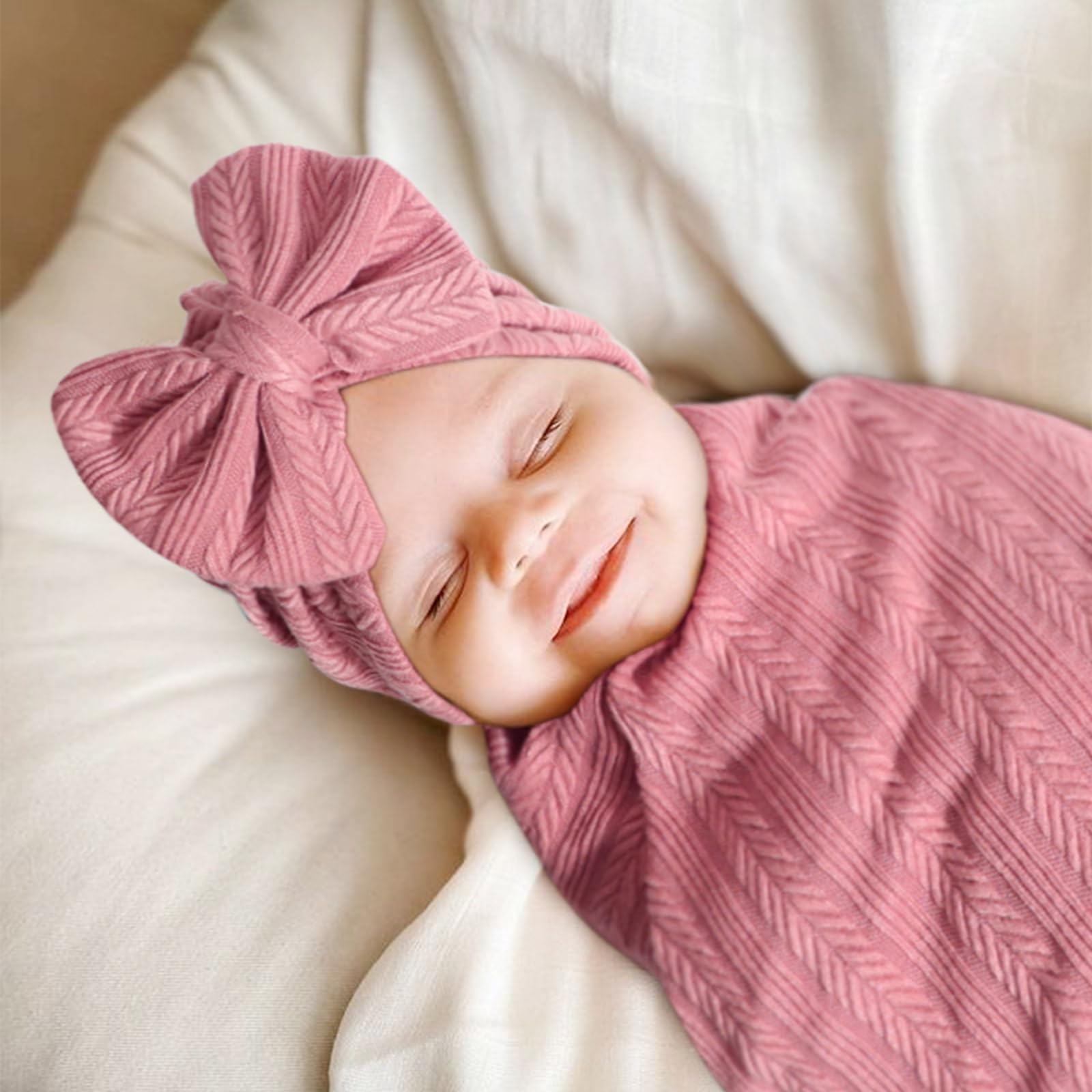 💝【Soft Fabric】- This baby blanket and headband hat set are made of super soft, stretchy and comfortable fabric. Warm and comfortable for baby's delicate skin. They contain no any harmful chemicals and are gentle on even the most sensitive skin.