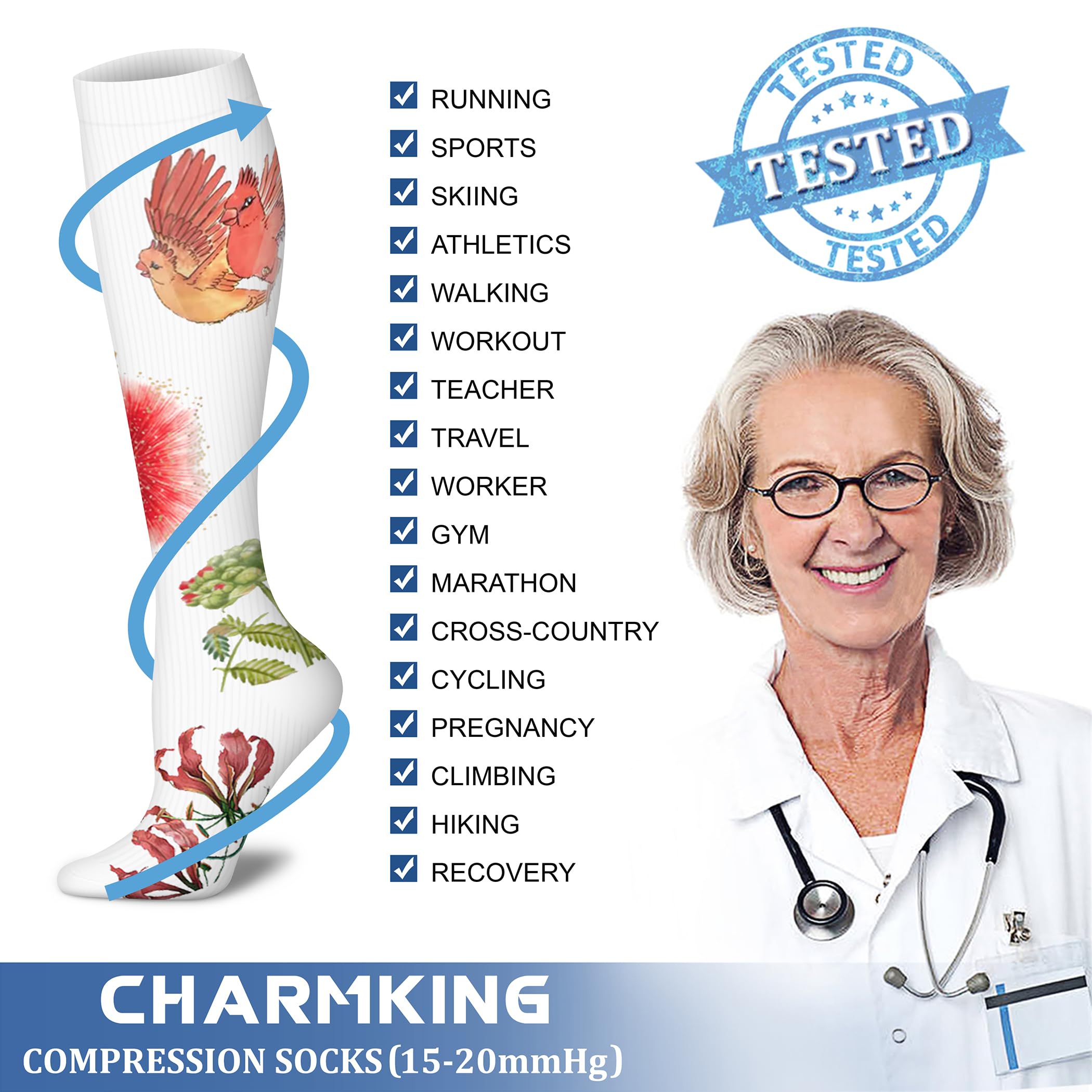 SUPPORT - Our compression socks (15-20 mmHg) come highly recommended by trainers. They are suitable for athletes, teachers, flight crew, receptionists, office workers, nurturing mothers, and the elderly. These socks are universally suitable for all types of work.