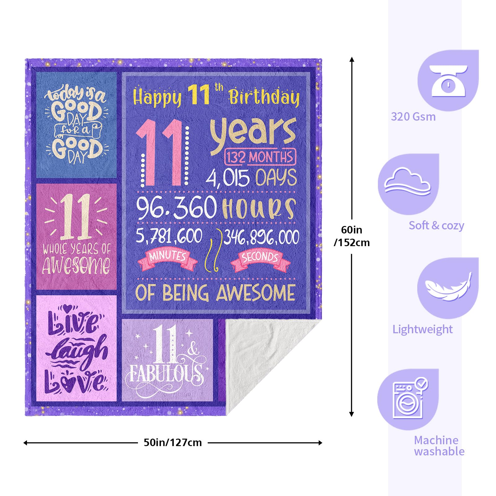 Birthday Gift for 11 Years Old Girl: This unique blanket is the best birthday gift for an 11-year-old girl, the perfect gift for the recipient to celebrate her special day with love and support. The interesting words on the blanket express your love and care for her. This must be a great birthday surprise for her.