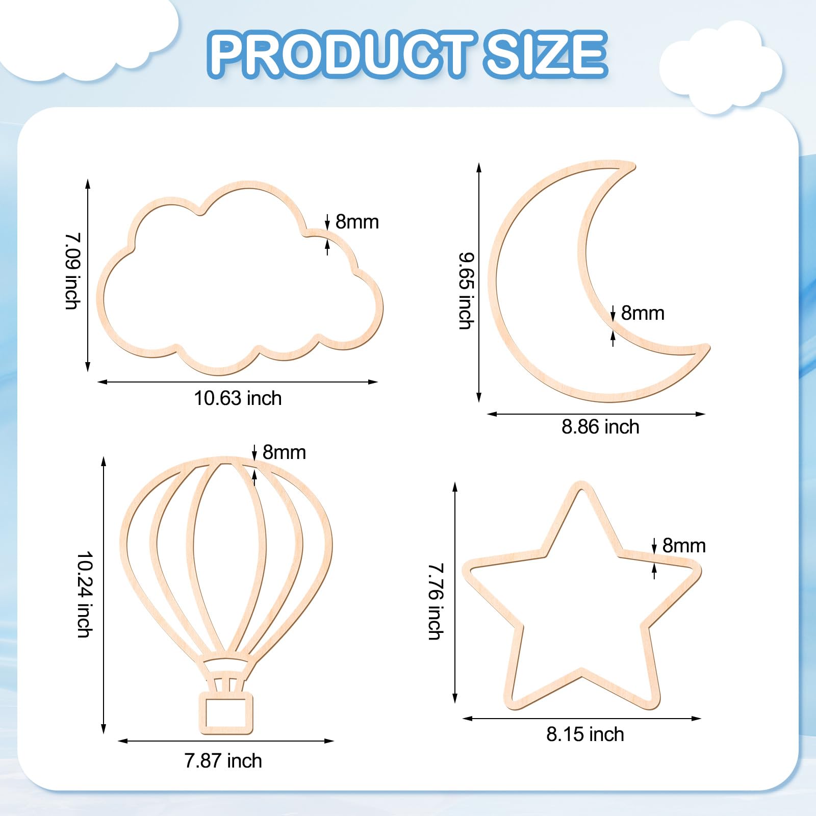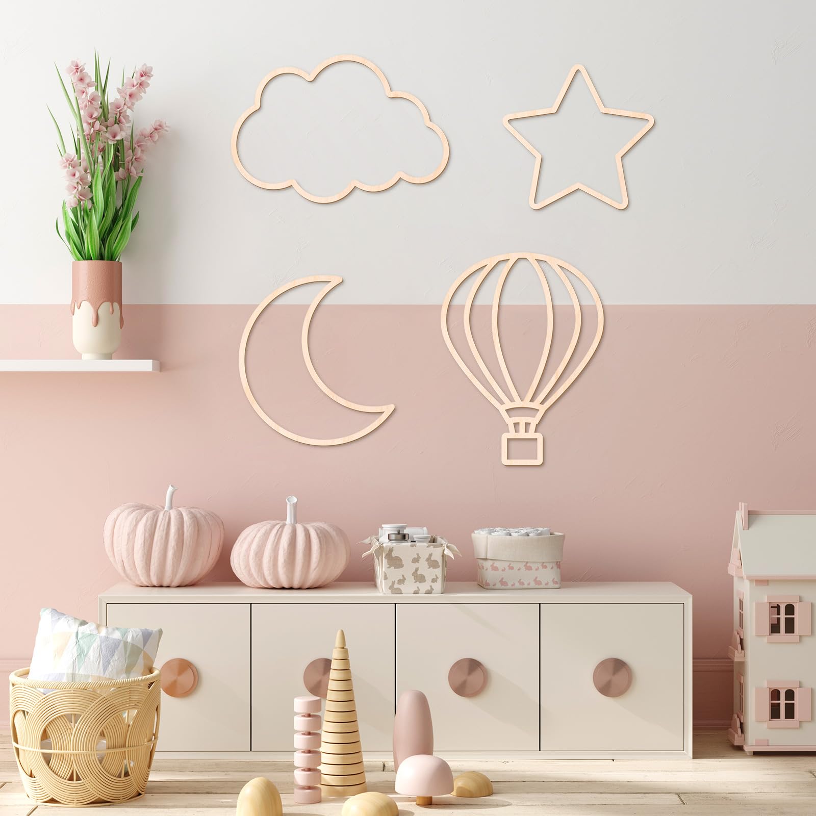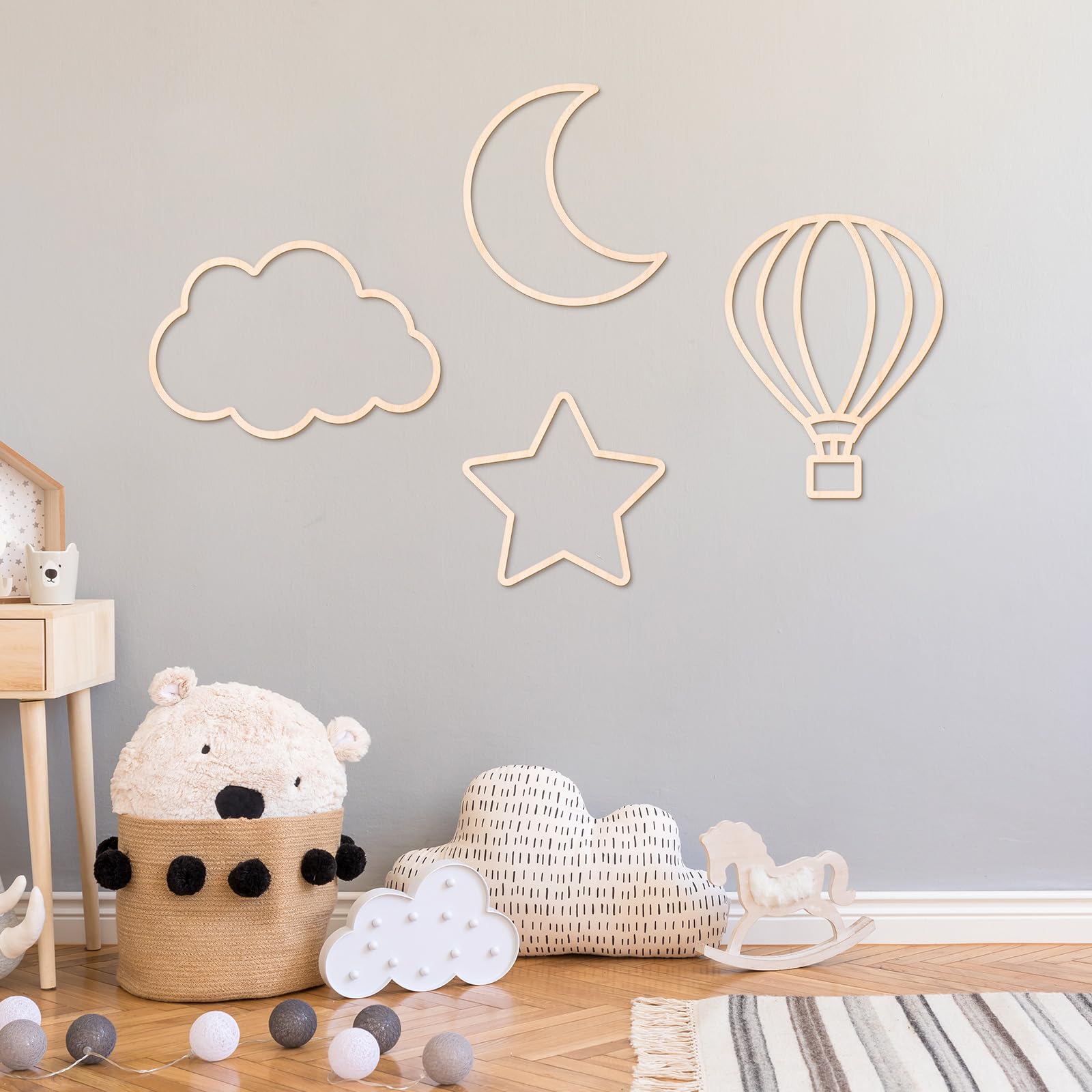Package Quantity: the package comes with 4 pieces of cute decors in cloud, star, moon, hot air balloon, enough quantity to decorate your boys' and girls' bedrooms