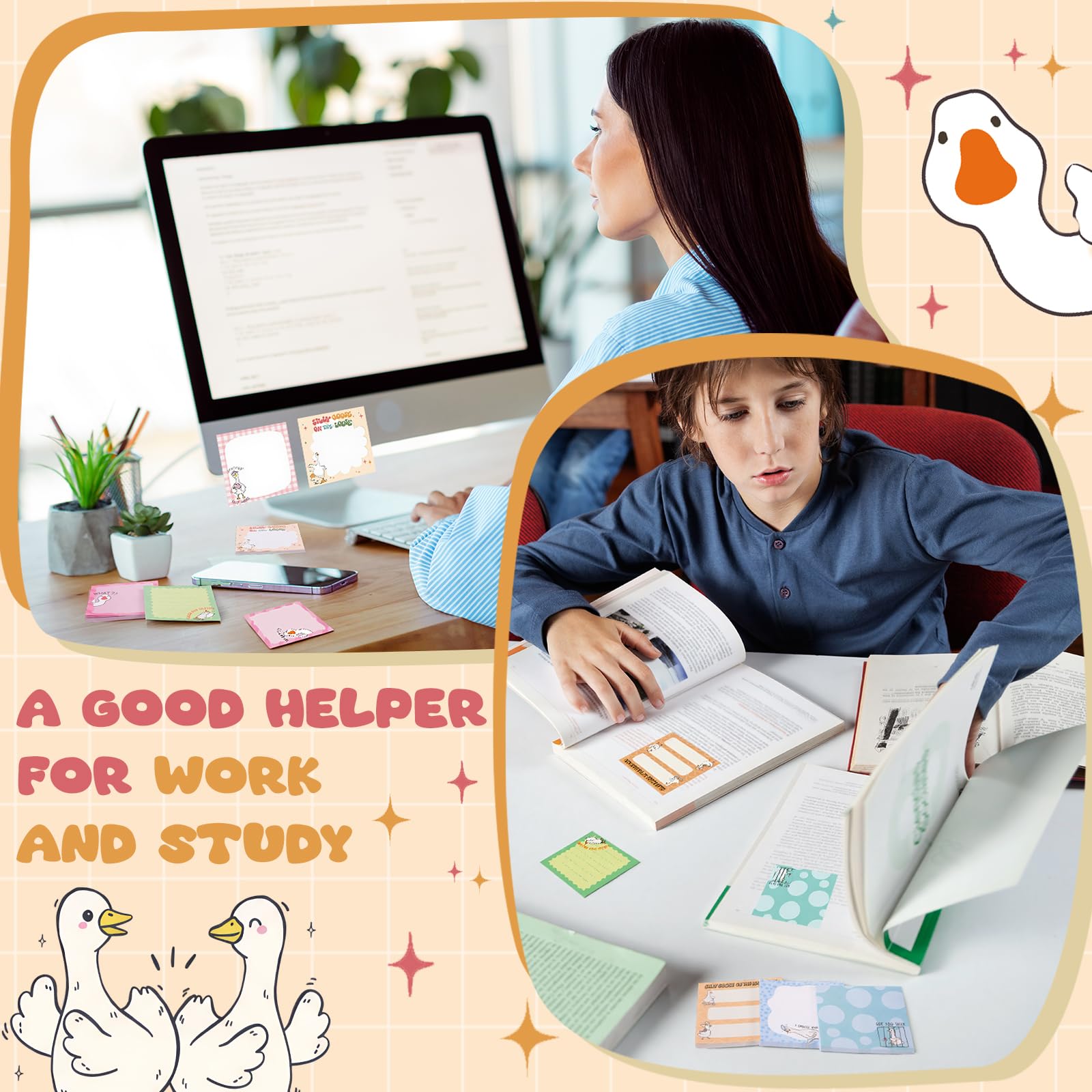 Delightful Goose Design: the goose sticky notes boast an adorable and vivid design of these beloved goose; Each sticky note showcases a cute pattern that embodies the unique traits of geese, from their graceful necks to their lively spirits; This makes a wonderful addition to the sticky note collection of animal lover