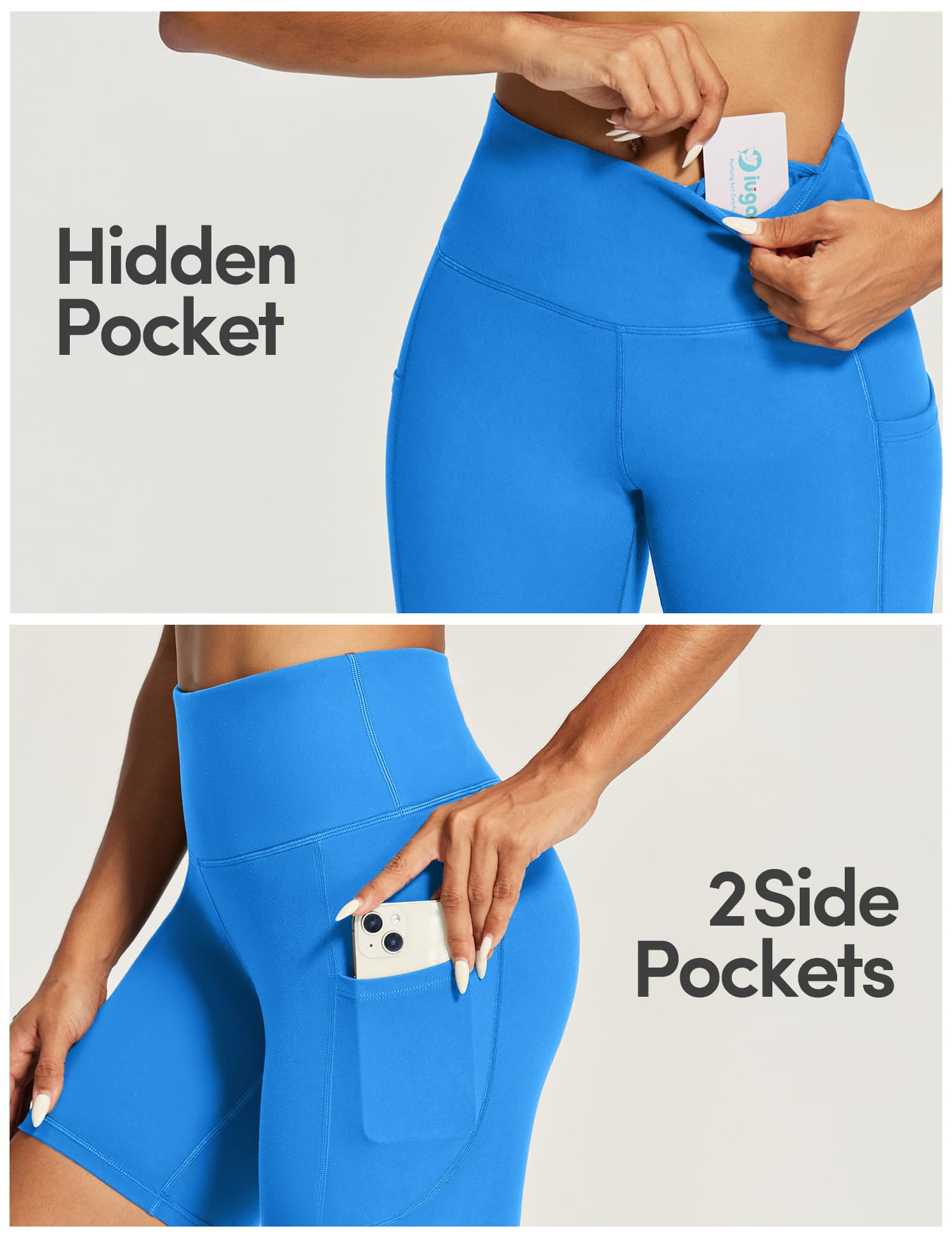 Being Hands-Free is Everything. IUGA Athletic Shorts feature 2 side pockets and 1 inner pocket in the waistband, allowing you to easily stash your phone or keys without weighing the shorts down. Now, no more worry about exercising with something in your hands. The IUGA women's yoga shorts will be your ideal choice for workouts