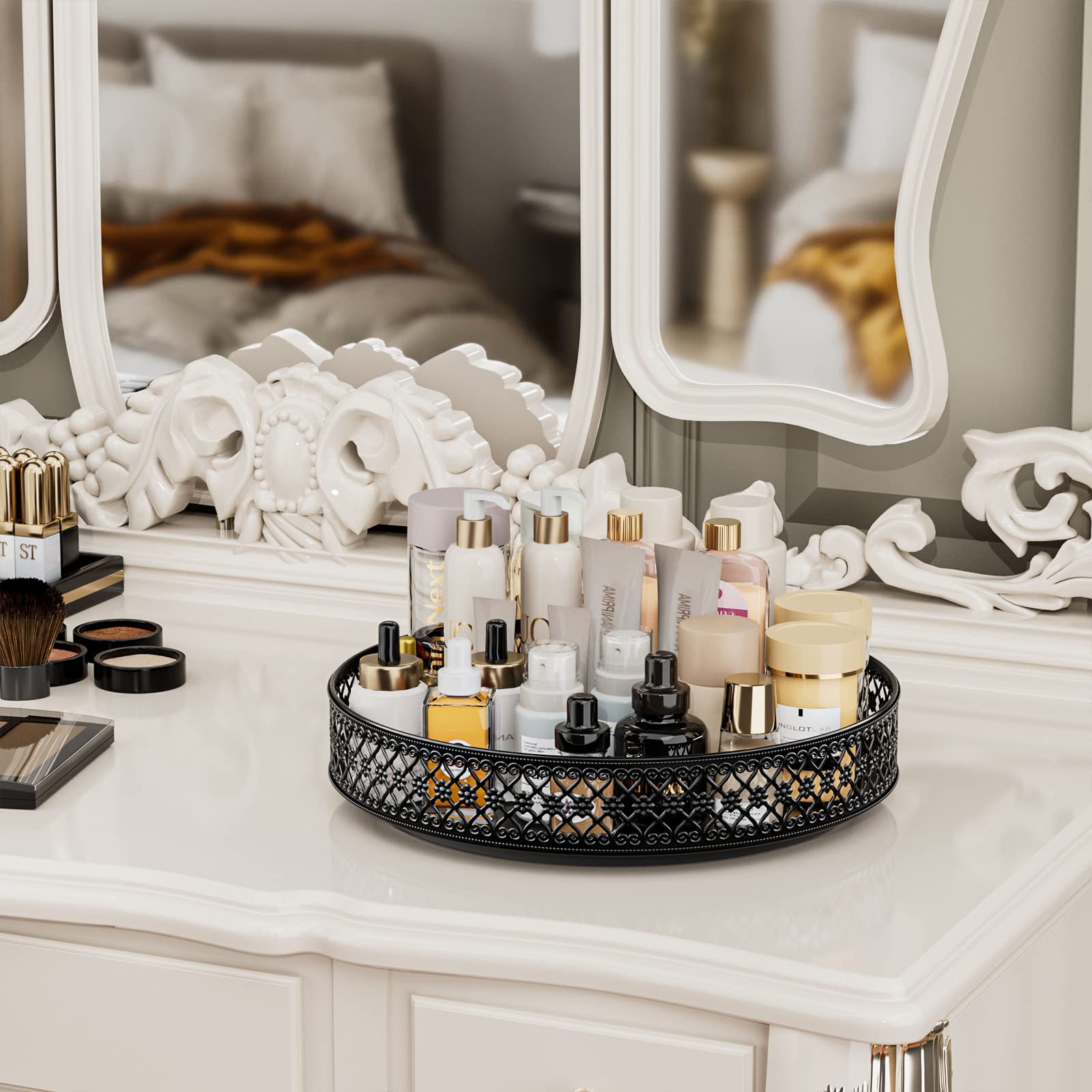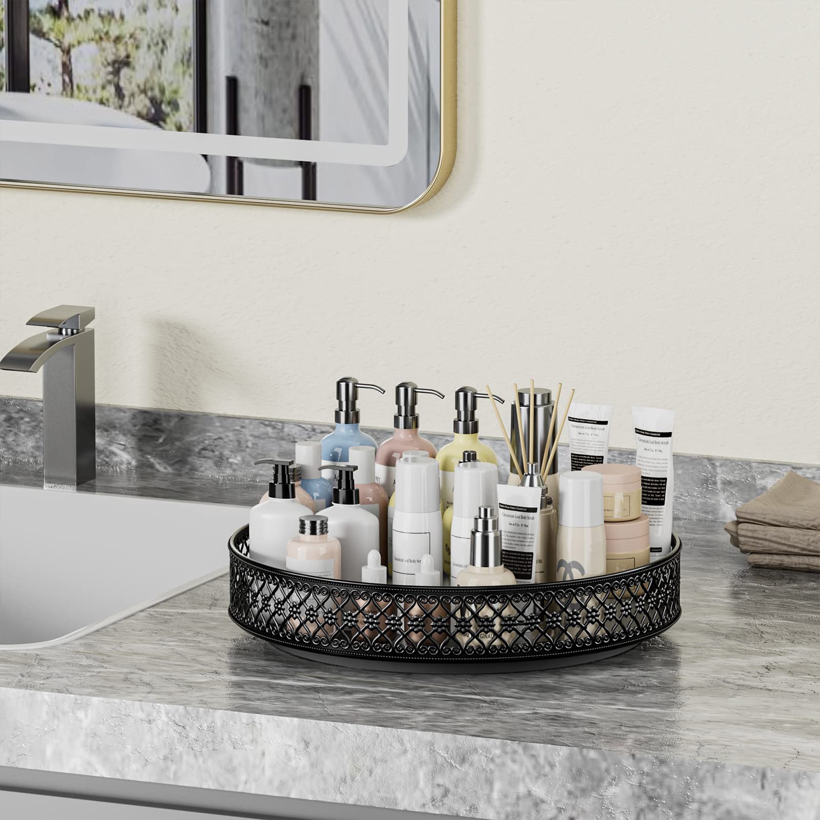 Floral Raised Edges:The heightened edges with beautiful classic floral design . not only provide a special decorative vision but also avoid items from falling when rotating , it's more safe to move this organizer tray from one place to another . Open design make the items visible and easy to access. If you have any questions, please feel free to contact us, Ovicar will provide 100% satisfaction after service.