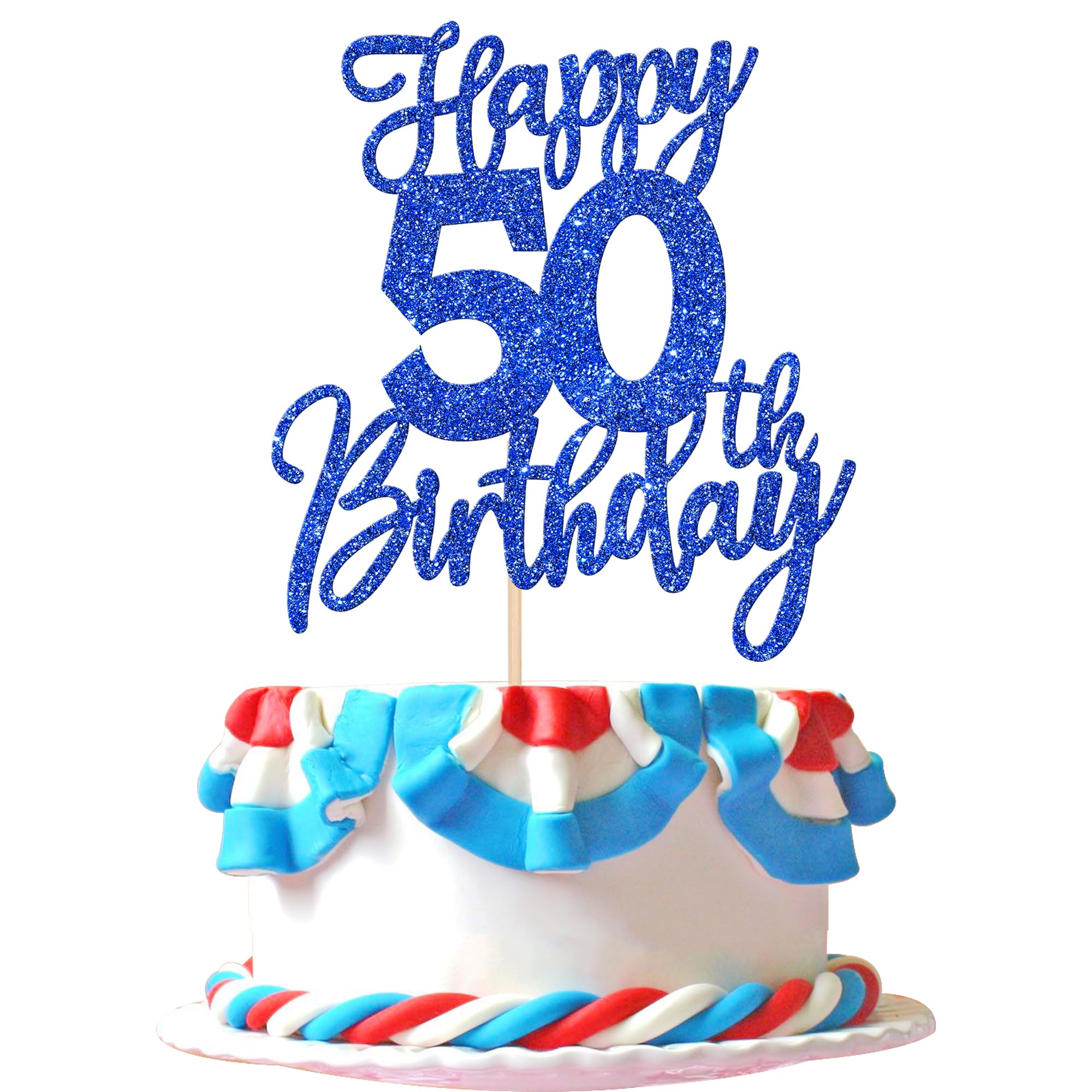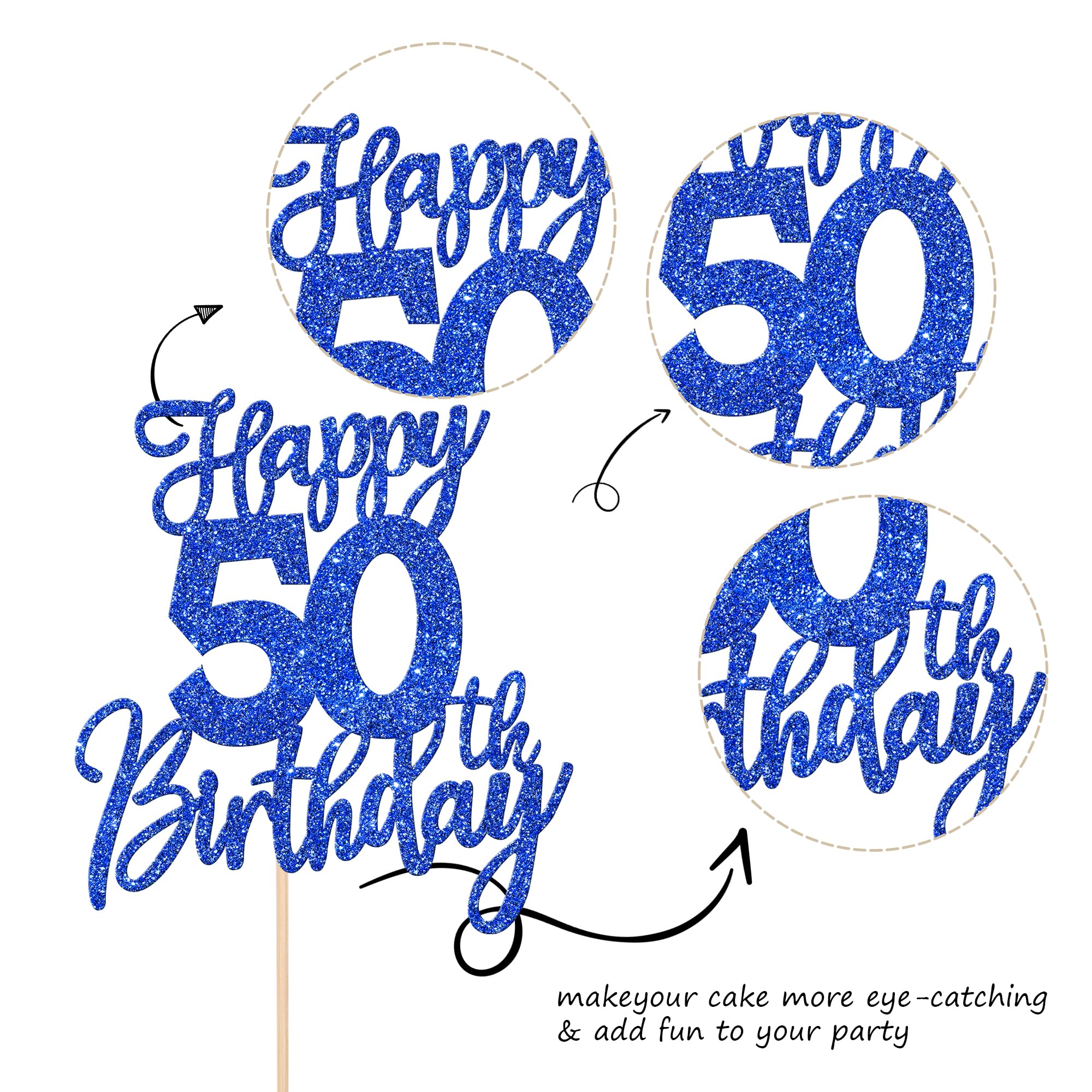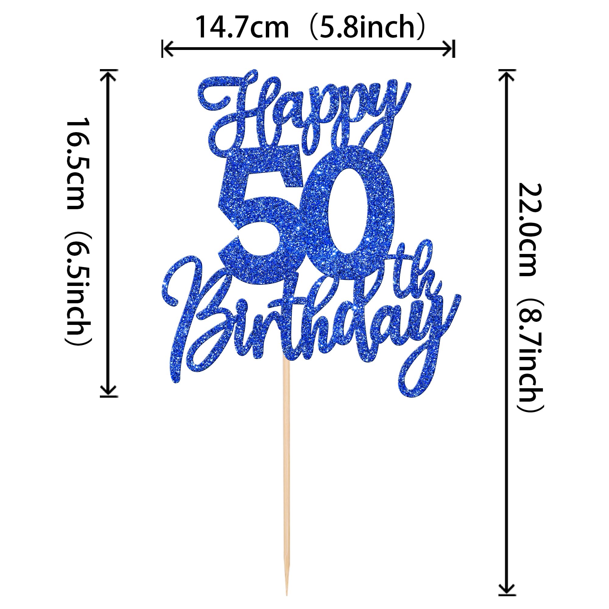 Happy 50th Birthday Cake Topper for Happy 50th Birthday Anniversary Theme Party Cake Decorations Supplies Perfect for happy 50th birthday theme party, cheers to 50 years party,50th anniversary theme party cake decorations supplies. Pack of 1 pcs. The size is W 5.8 inch * H 8.7 inch / W 14.7 cm * H 22 cm ( with stick ) Made of high quality paper card stock and food grade sticks,thick and sturdy. This cake topper is one side glitter, another side is white, and this is intended for decoration only, please do not put them in oven or microwave. If the item you received has any defects, please contact us for refund.we will deal with it within 24 hours.