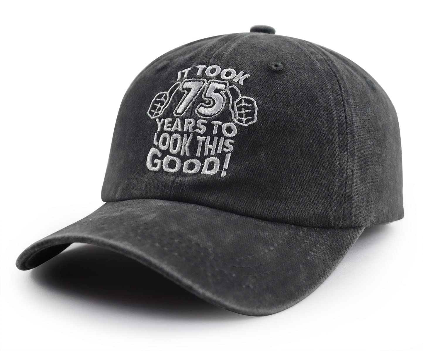 β Adjustable Design: Our 75th Anniversary Gifts for Him Her, It Took 75 Years to Look This Good Mens Womens Baseball Caps Circumference: 56-62cm/22inches-24inches, Hat Height: 9cm/2.8 Inches, Brim: 7 Cm/2.77 Inches. Adjustable Metal Buckle Back Closure, Great Fit for All Head Sizes. 6 Panel Structure, 6 Embroidered Eyelets, Breathing Hole Design Increases the Permeability of the Hat.