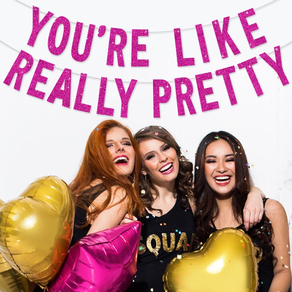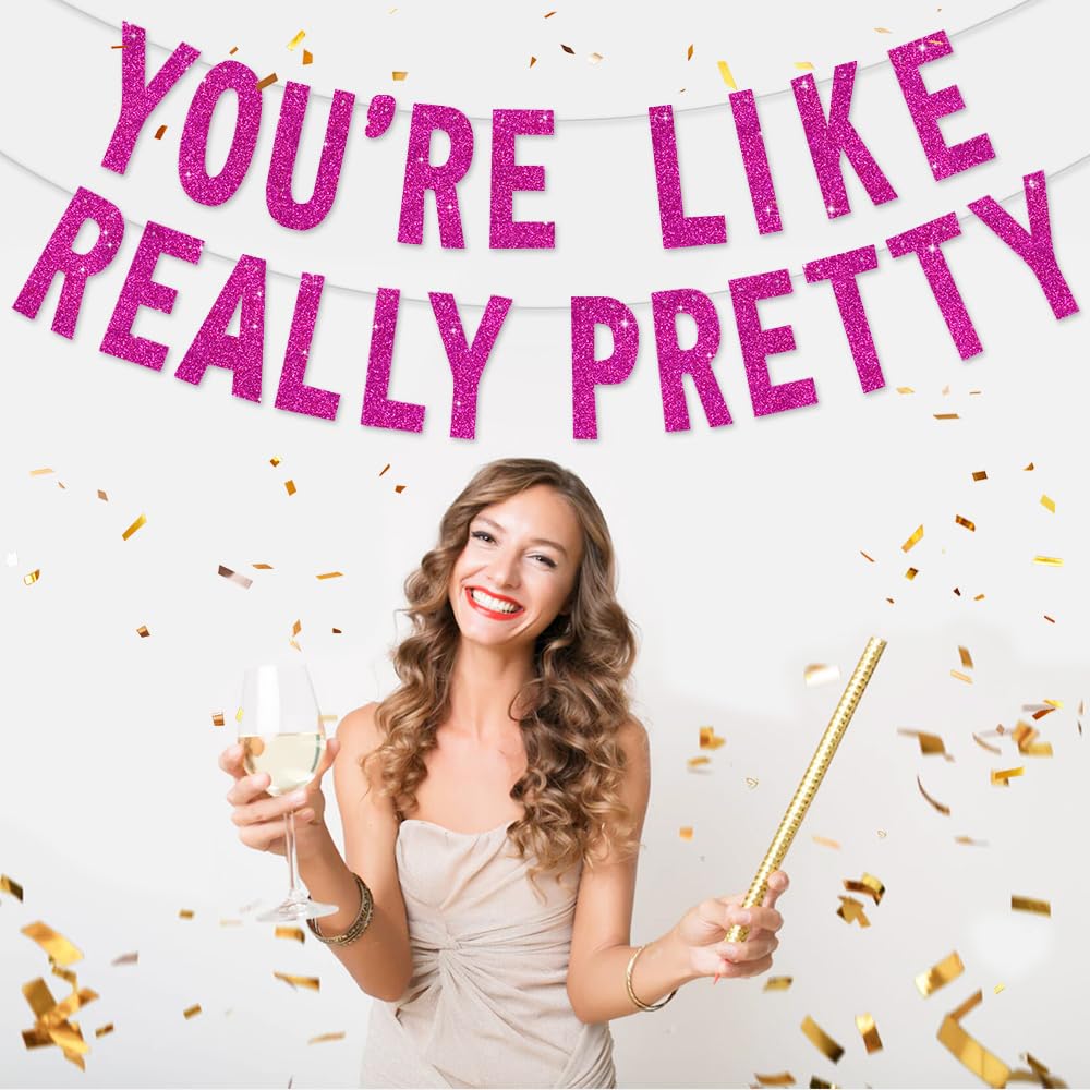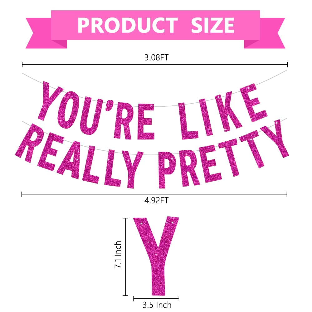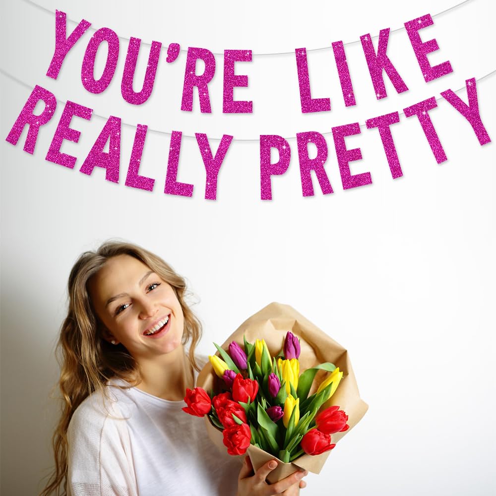 BEISHIDA Rose red You're Like Really Pretty Glitter Banner,NO DIY, Pre-Strung Mean Girls Birthday Party Bachelorette Party Decorations,Birthday Gift for Girl