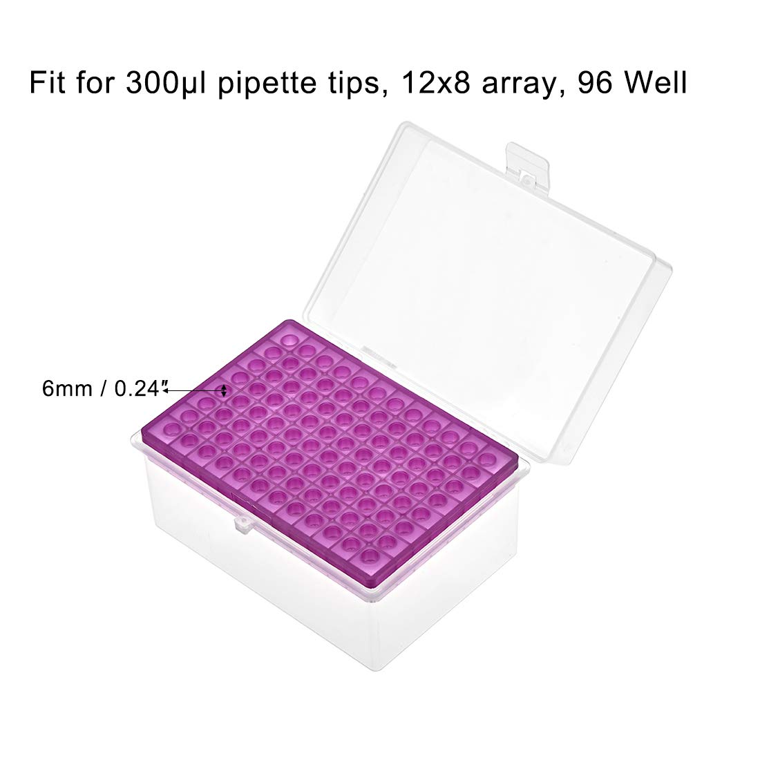 [Size] - Fit for 300ul pipette tips, 96 Well; Overall Size: 122x95x68 mm / 4.8*3.74*2.68 Inch (L*W*H); Hole Diameter: 6mm / 0.24 Inch