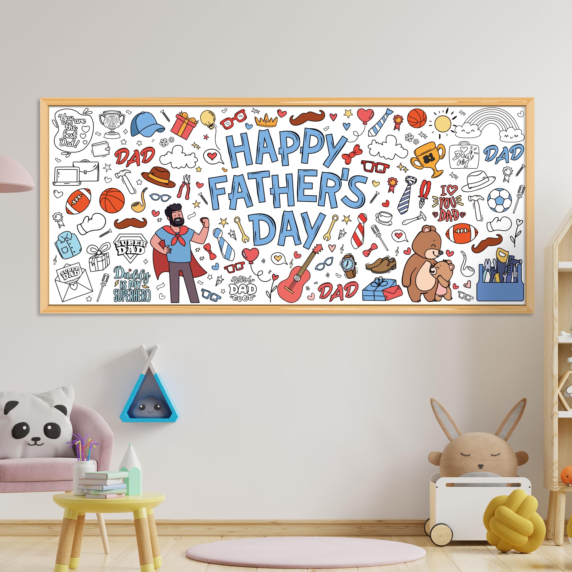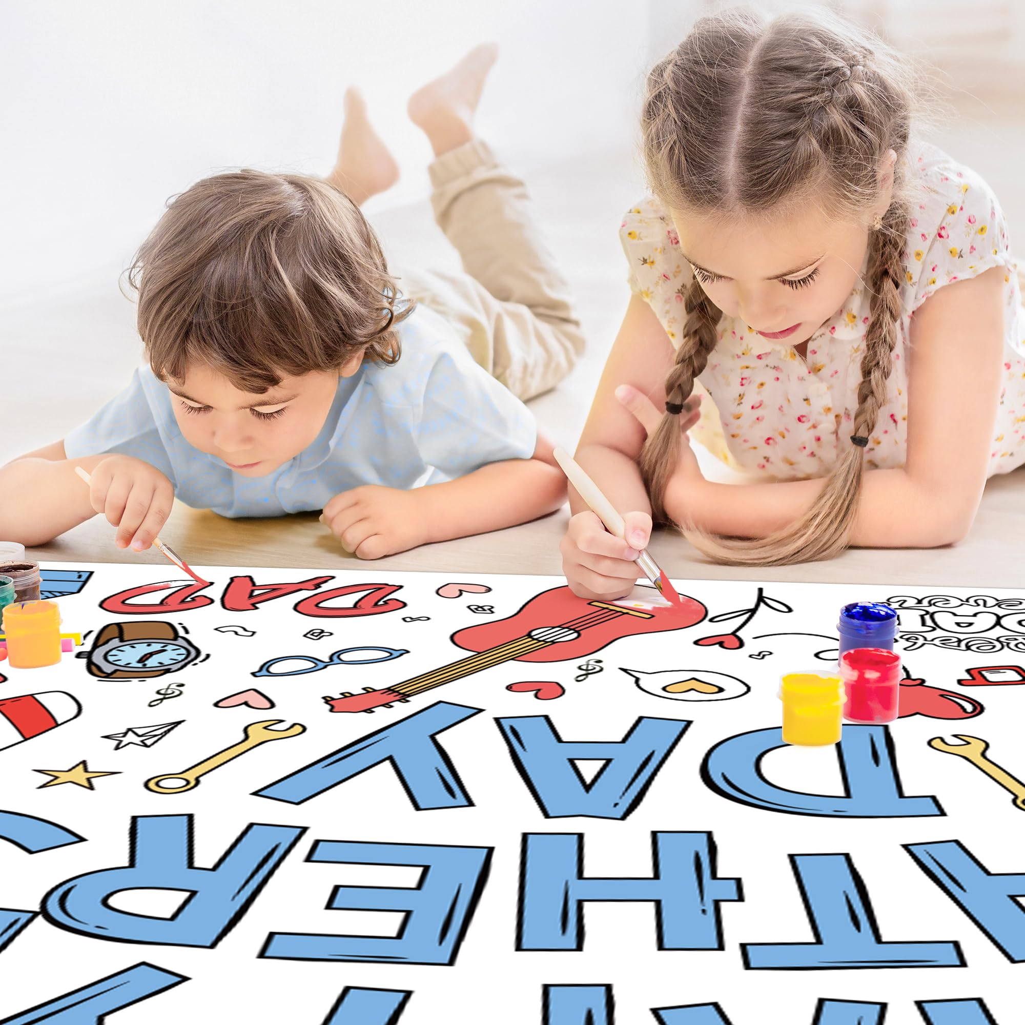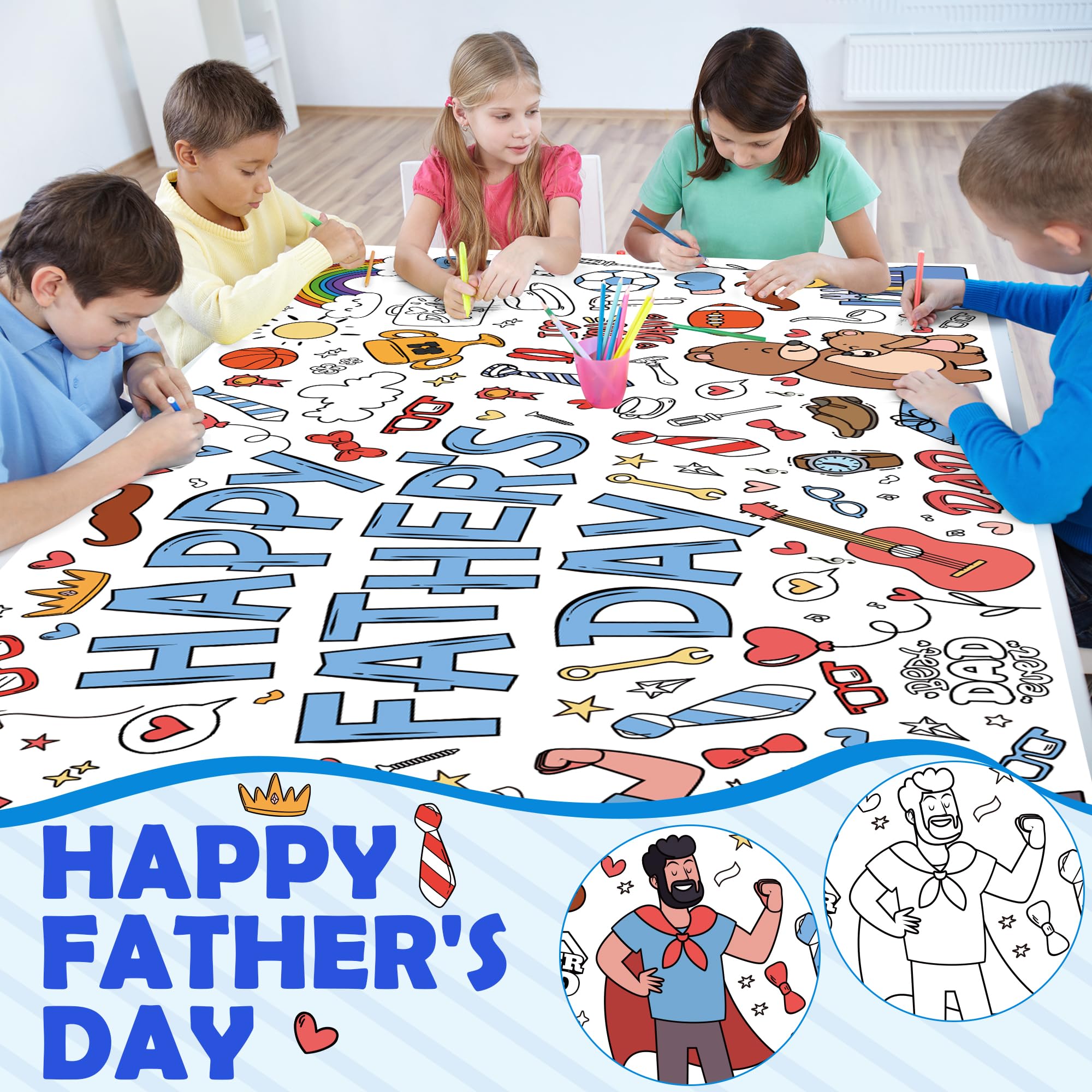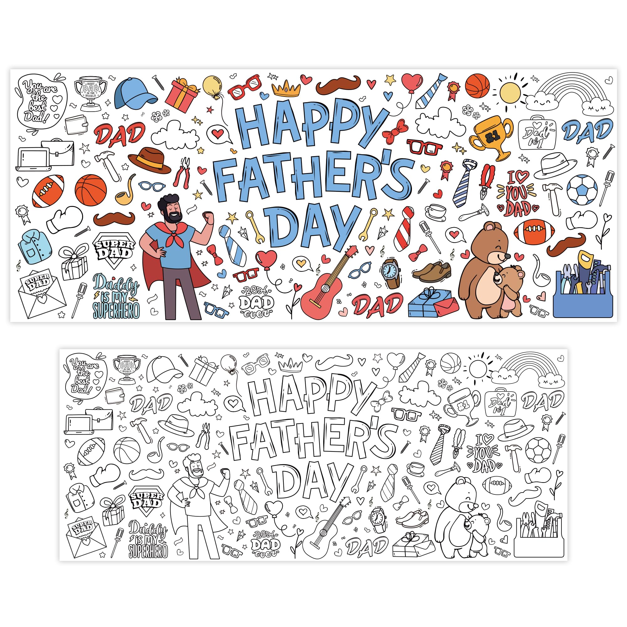 [Giant Coloring Poster]:Fathers day banner.The size of this large coloring poster not only helps create a large arts and crafts area...it also can serve as a tablecloth, keeping your table clean from the kid's messes.Fathers day gifts from son.