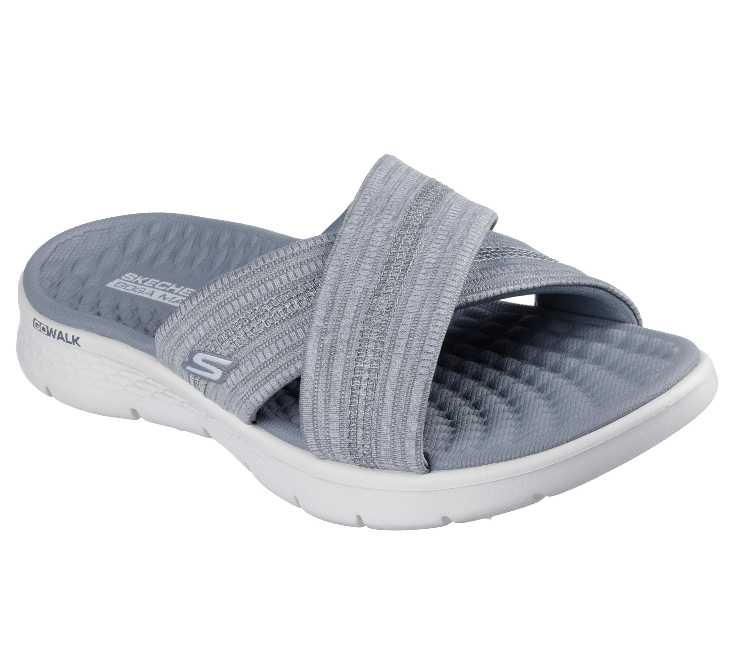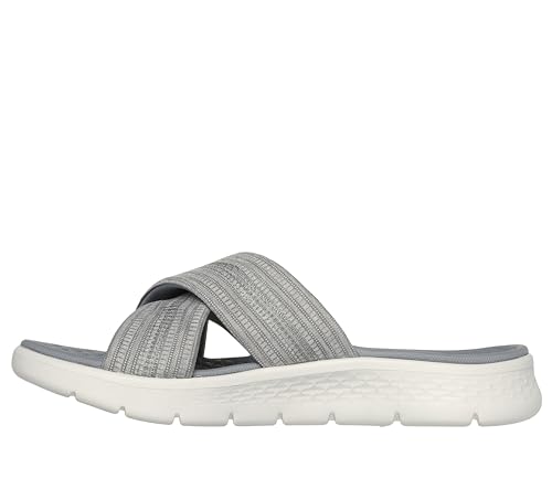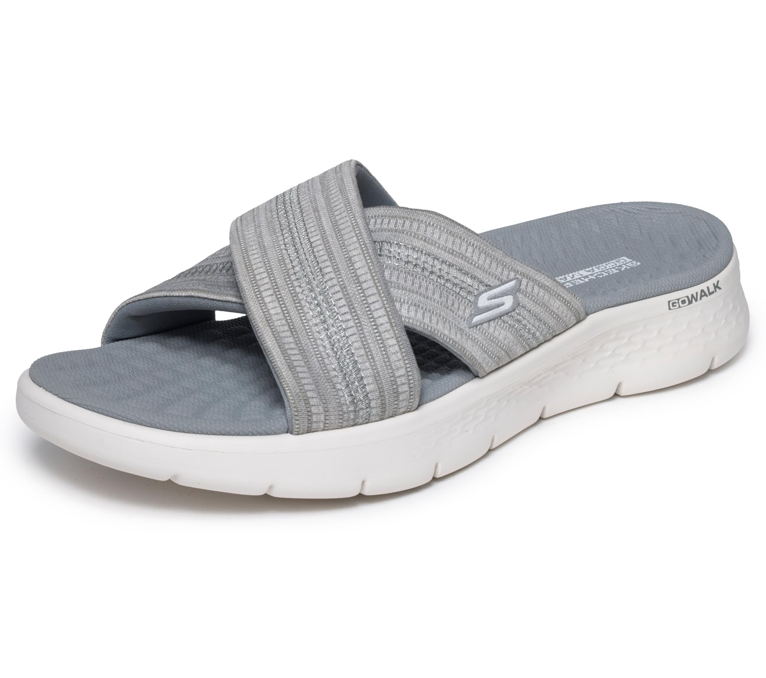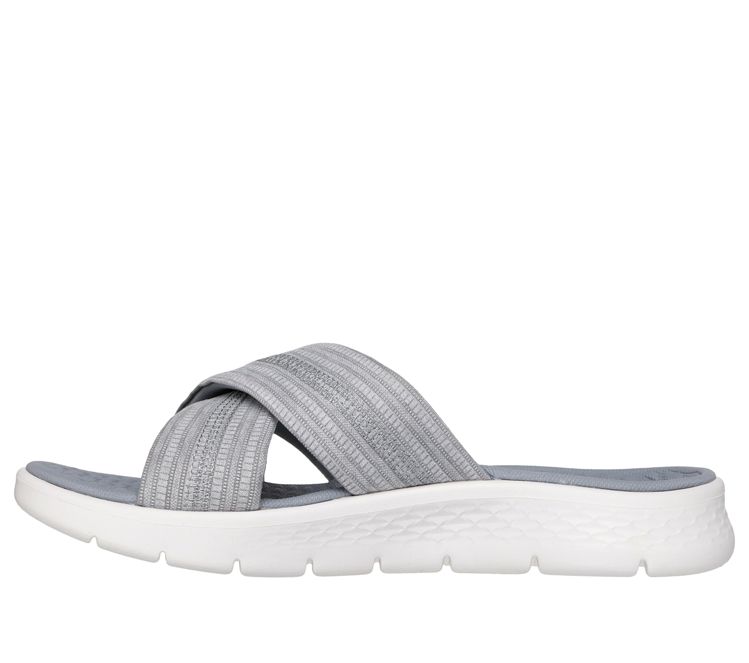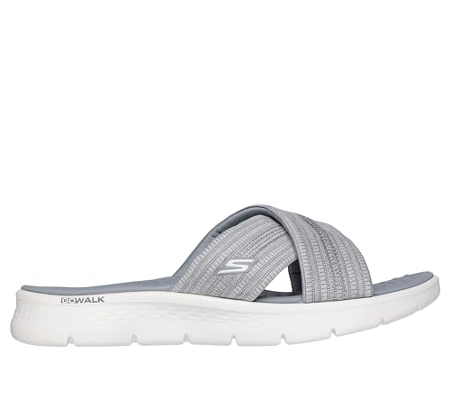 Description Treat your feet with ultimate comfort and style wearing Skechers GO WALK Flex Sandal - Impressed. This vegan slide design features a woven memory foam fabric cross-strap upper with a contoured Goga Mat footbed, and lightweight ULTRA GO cushioning.
