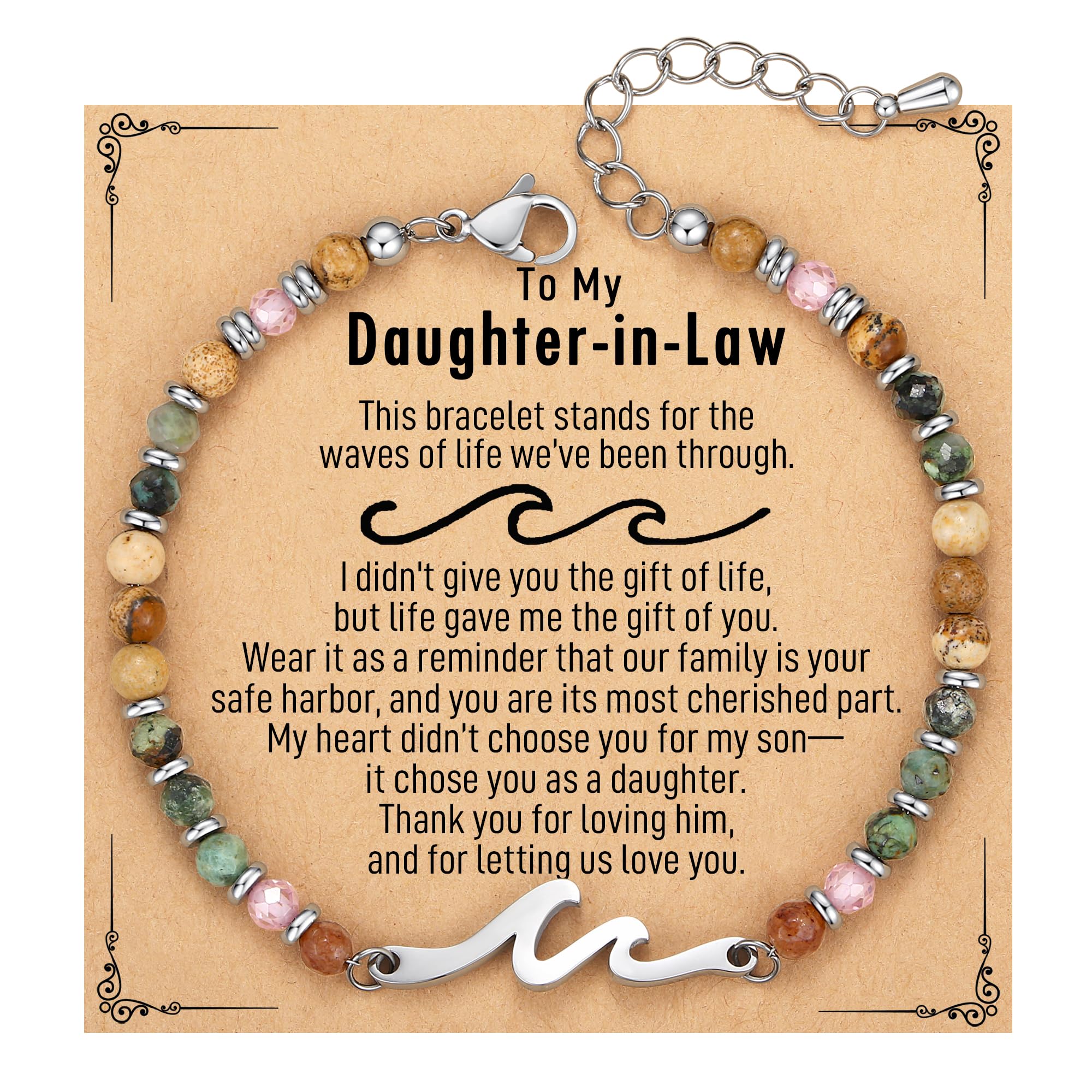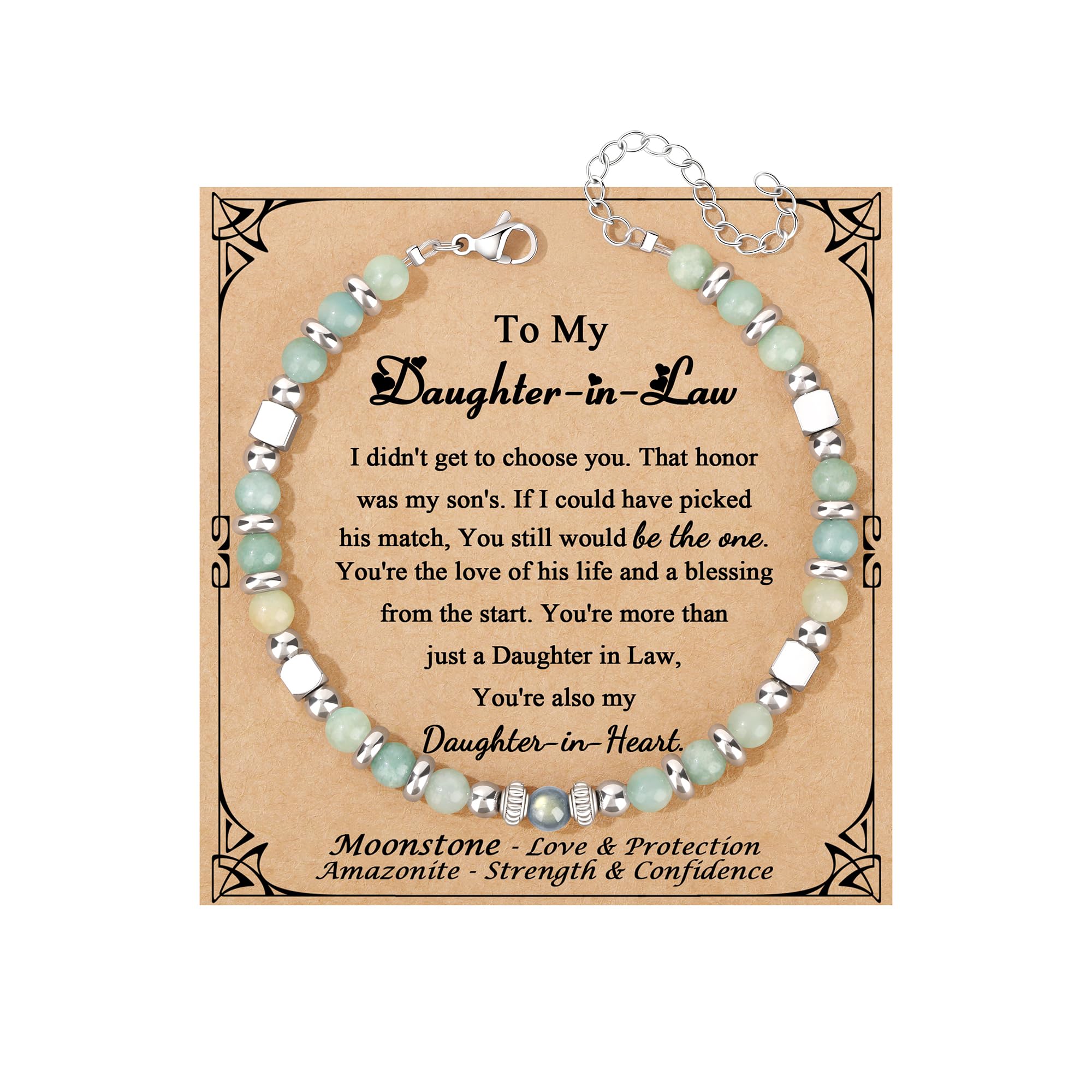 ๐Unique Gifts for Daughter In Law: Every bracelet is one-of-a-kind, just like youโno two natural stones are ever exactly the same. Bracelets with a gift card, uplift and touching words to her. A great gift on Birthday Mothers Day Christmas for her.