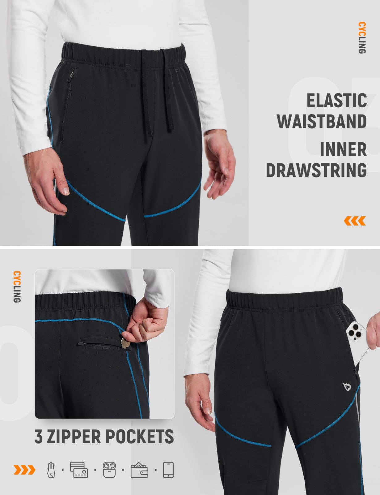 3 Zipper Pockets: Both of the 2 side pockets and 1 back pocket with secured zippers of the mens winter cycling pants provide great convenience, great for carrying your phone, keys, cards or other valuables.