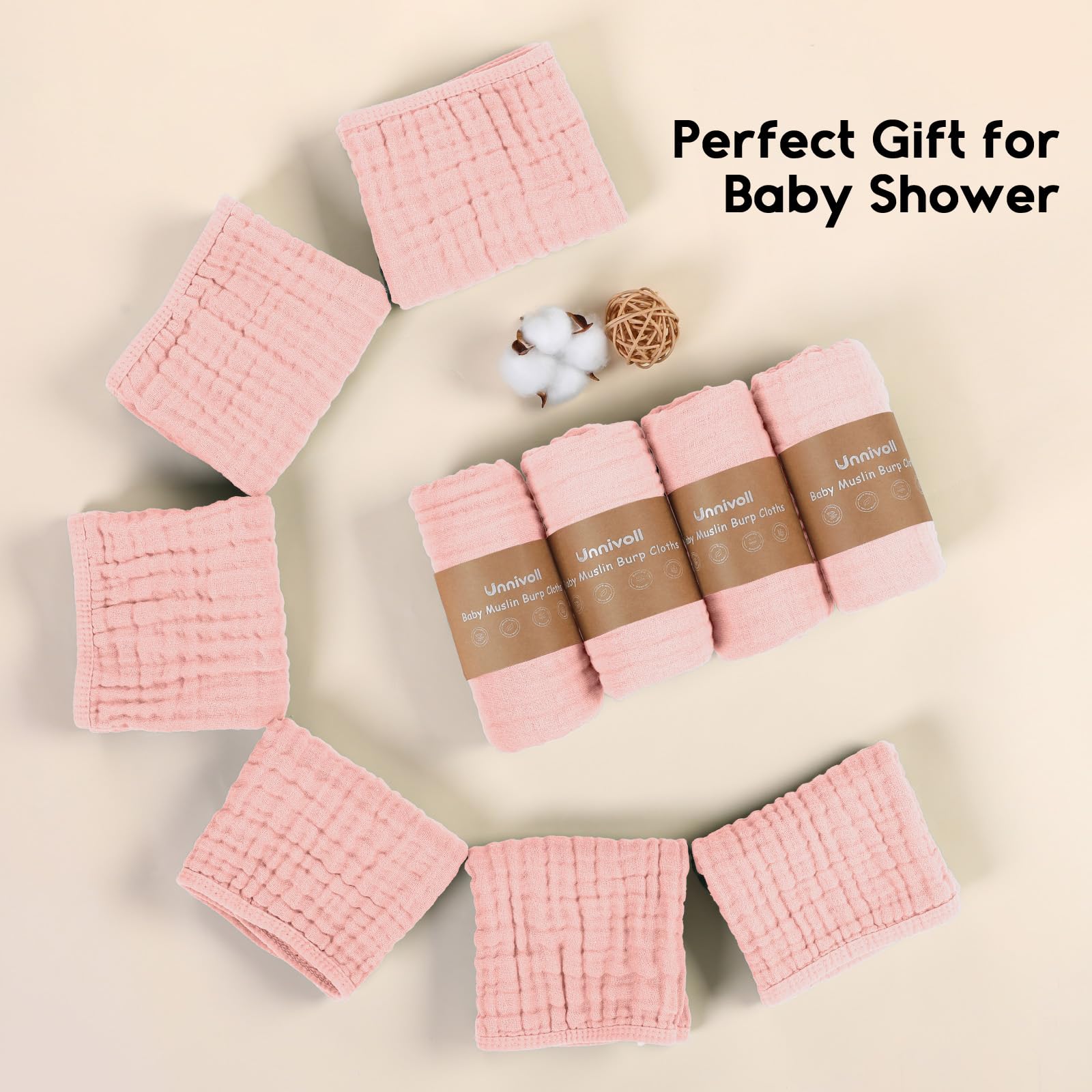 ❤Safety Comes First: Made from 100% premium quality cotton,Unnivoll muslin burp cloths is certified to meet Consumer Product Safety Commission (CPSC) guidelines, eliminate all potential risks and provide a soft, breathable, cloud like comfort for your little one. The natural muslin is also suitable for all skin types including sensitive and delicate skin, perfectly use on the face, hand and body.