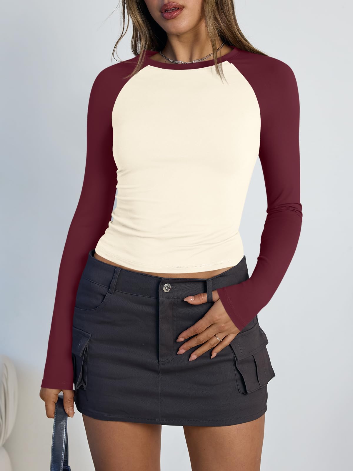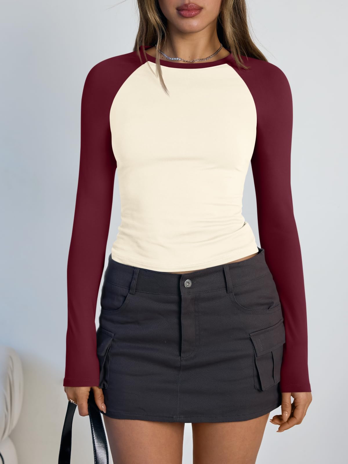 This trendy long-sleeved t shirt will have you looking your best wherever you go. With its perfect fit and cute contrasting neckline and sleeves, this top is the perfect way to stay casual while looking super cute.
