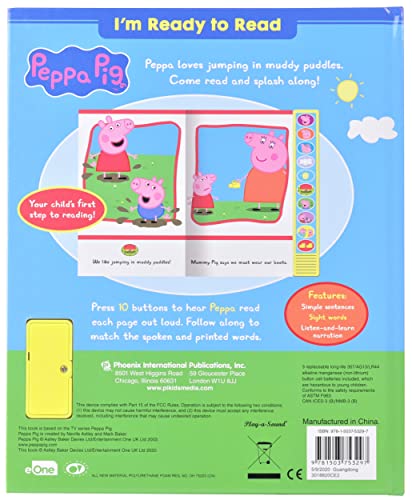 Read along with Peppa! Press 10 buttons to hear the whole story read aloud as Peppa visits friends and jumps in muddy puddles. Simple sentences, large type, and expressive narration make it easy for beginning readers to follow along! This book is special because: Simple sentences and large type ease the way for beginning readers Children can spot and say familiar words and sound out new ones Expressive narration by favorite characters enhances comprehension