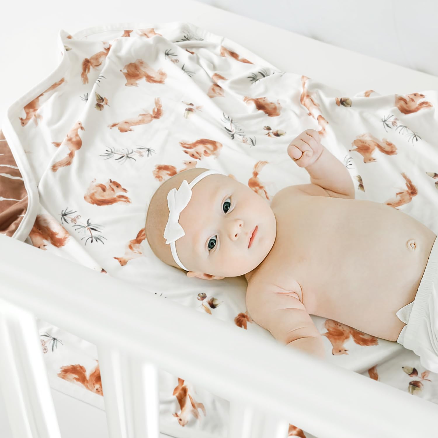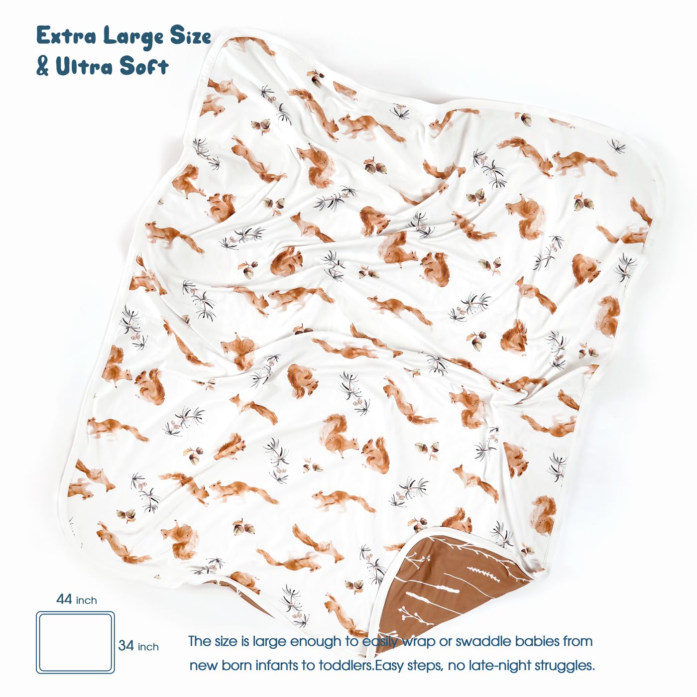 Double Layer: Double layer in medium weight is perfect for all seasons. Measures 34" W x 44" L is great as a swaddle or receiving blanket in cold season and make it as a quilt and play mat in the hot season. The blanket will bring a comfortable sleeping temperature to your baby.