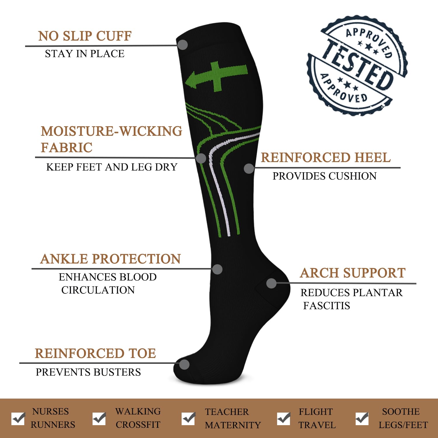 ★Alleviate Pain with Technology - Our Medical Grade Copper Compression Socks they are designed to improve blood circulation and oxygen flow, prevent cramps, fatigue, swelling, and aid in muscle recovery, varicose veins, and diabetes.