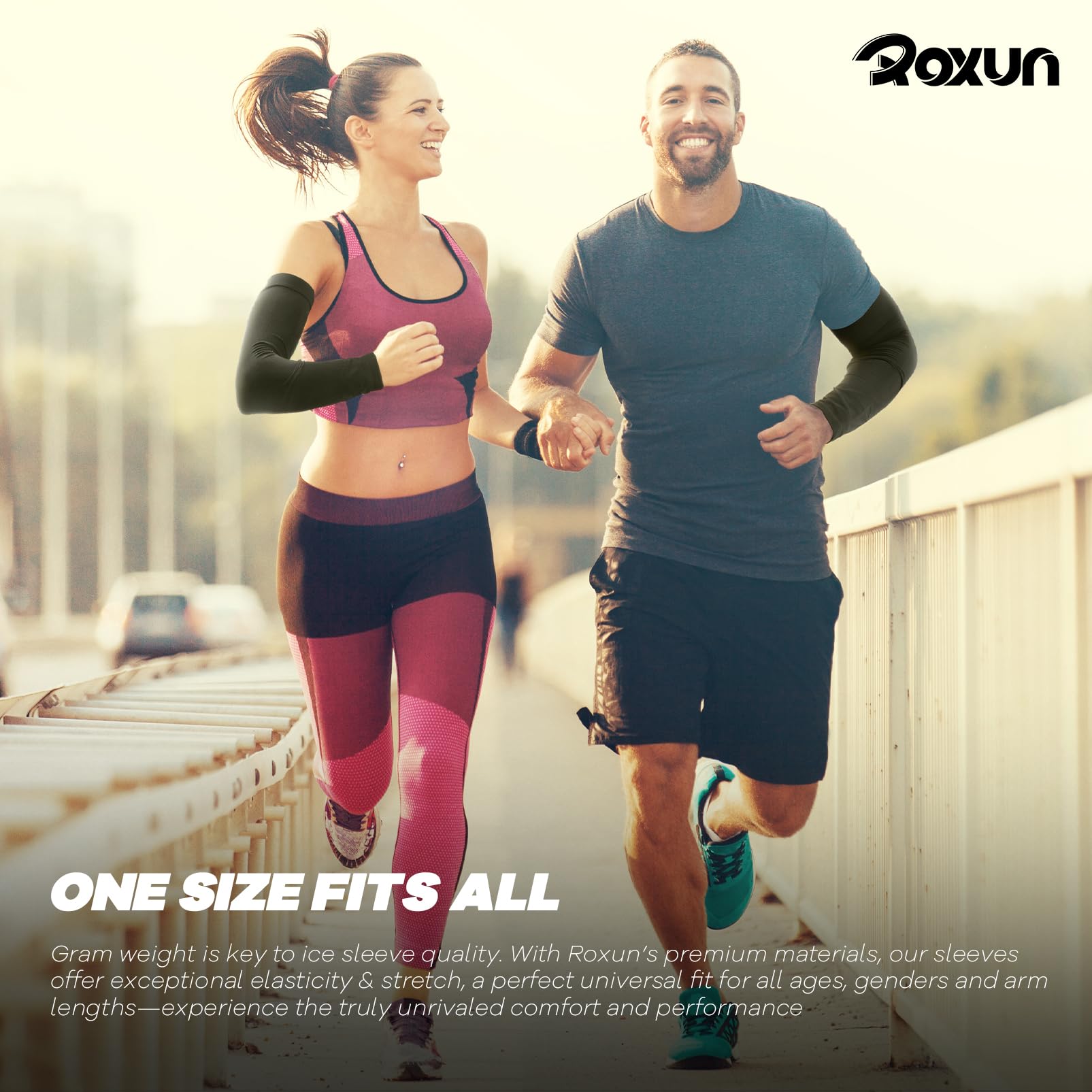 Description Tired of arm sleeves that compromise your comfort? At Roxun, we've got what you need! Discover Roxun's premium cooling arm sleeves, expertly crafted to provide a refreshing and cool experience during any activity. Made from a luxurious blend of 90% nylon and 10% spandex, these sleeves offer a breathable, second-skin fit that keeps you cool and comfortable. Our top-of-the-line UPF 50+ sleeves provide superior protection against harmful UVA and UVB rays, perfect for all your outdoor activities and available in a range of stylish colors. Roxun, a family-owned business, crafts arm sleeves with top-quality materials and expert craftsmanship. Experience the difference with our innovative fabric technology and 4-way stretch for a perfect fit.