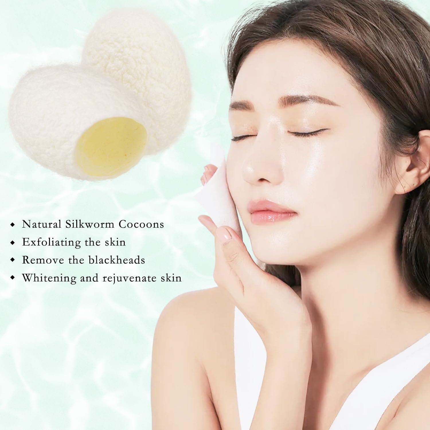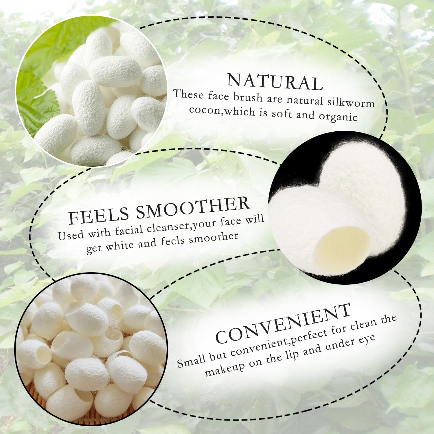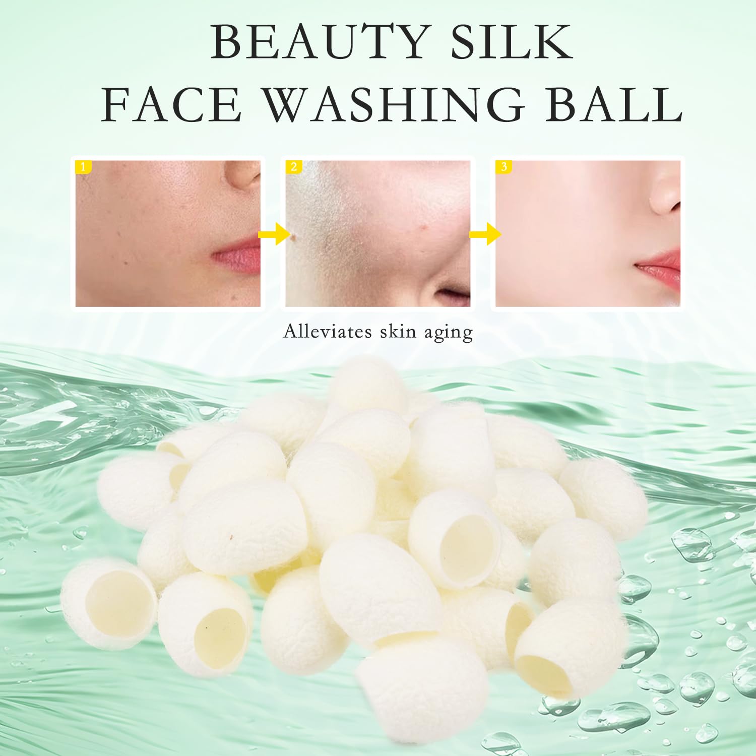 【How to Use】Just Soak the Cocoon Cleaning Ball in 50-Degree Water for 10 Minutes. When the Cocoon Is Moist and Soft, Put the Cocoon on Your Fingertips.clean your cheeks, Silk cleansing balls suitable for all skin types.