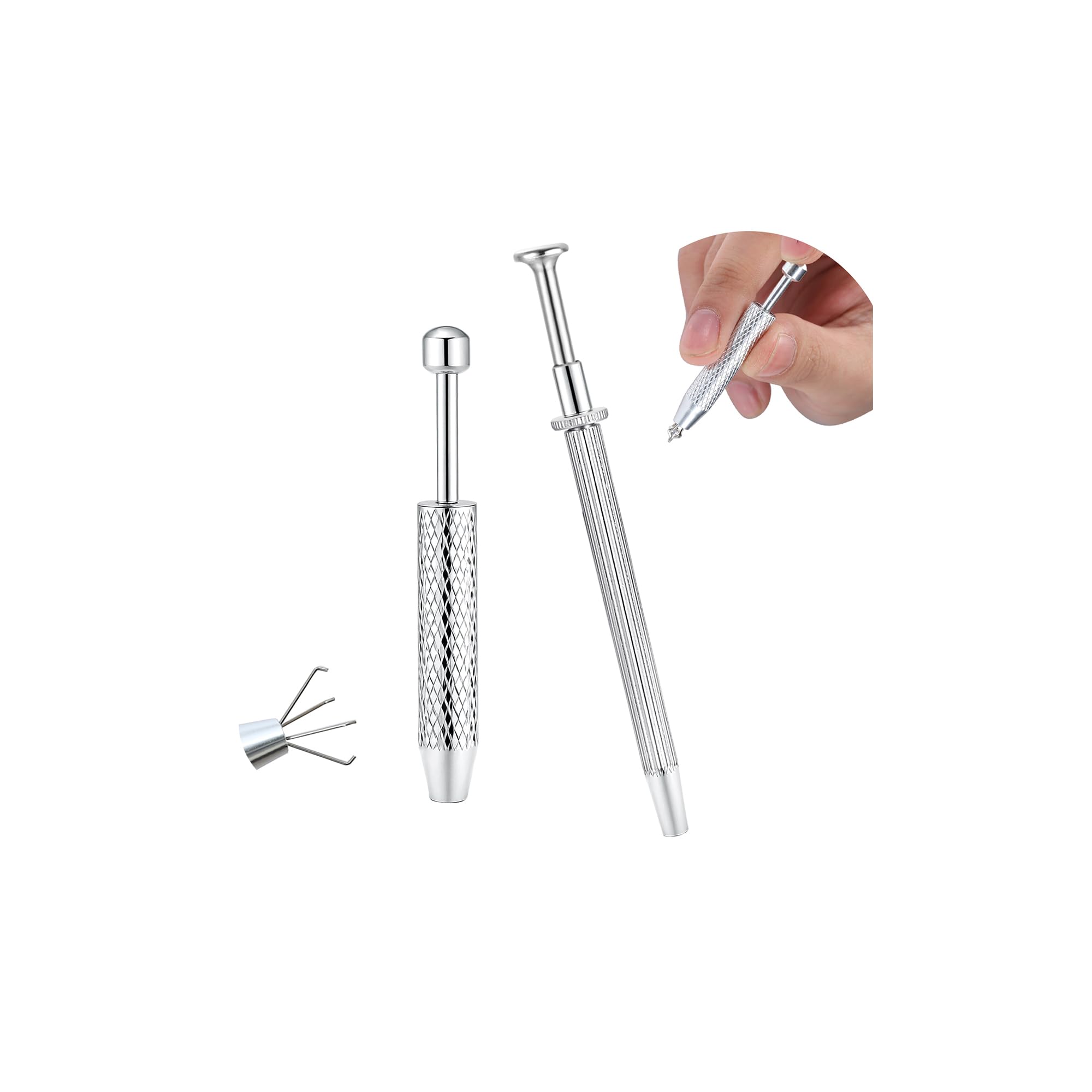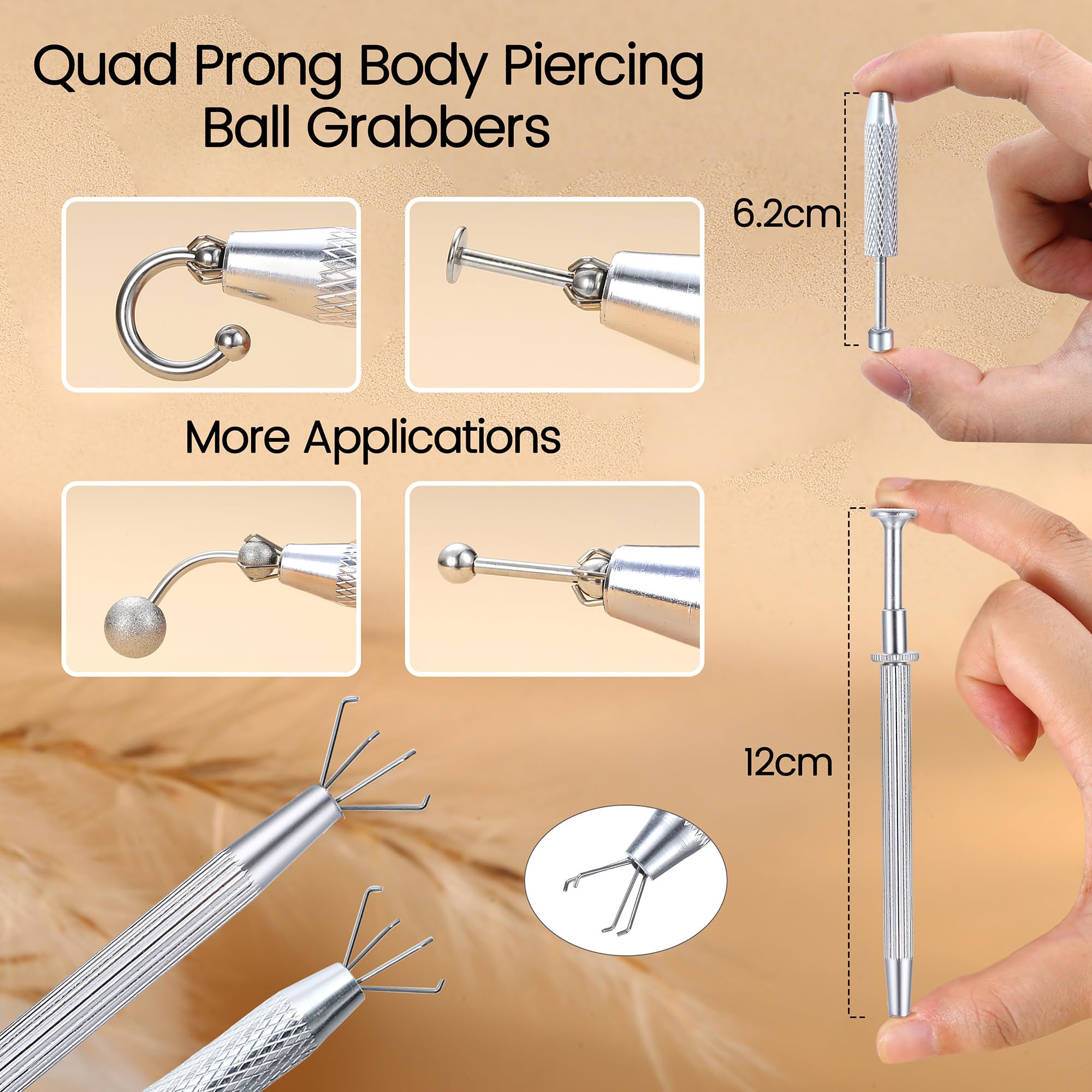 4 Claw Holder Design: This reacher grabber pickup tool features a 4-claw holder that securely grips small and delicate jewelry pieces, including piercing balls, studs, and other small parts. The claws are designed to provide a firm yet gentle hold, preventing damage to your jewelry during removal and insertion