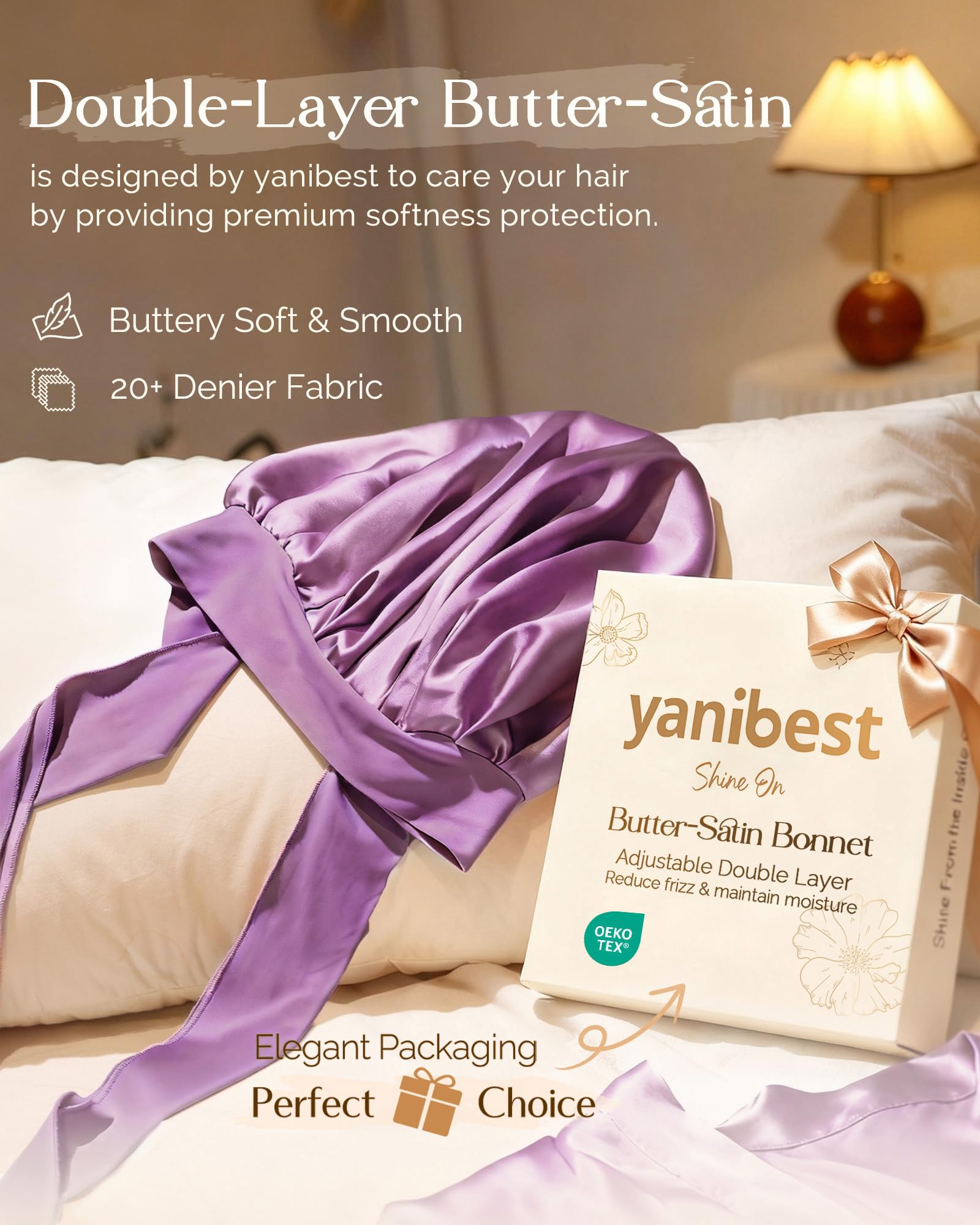 Comfortable and soft butter-satin: YANIBEST breathable non-slip hair bonnet to care your hair by providing premium softness protection. The sleep cap can reduce friction, prevent frizz or messy, retain moisture and maintain hairstyles overnight for hair care