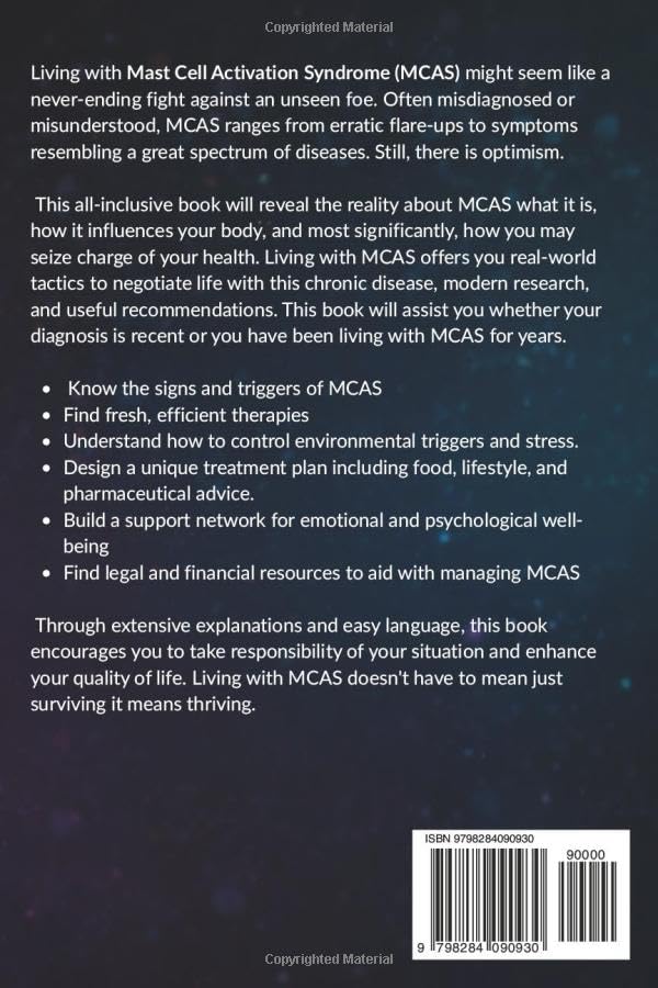 Though you are not alone, living with Mast Cell Activation Syndrome (MCAS) can be perplexing and too much. This sincere and simple-to-understand book by Elizabeth Phillips combines her personal experience with current medical expertise to help you comprehend this challenging disease. This book explains how to identify the triggers that could induce flare-ups, why MCAS generates so many varied symptoms, and what it actually is. You will discover useful advice on therapies, lifestyle modifications, and methods to handle the emotional highs and lows of chronic disease. This book provides hope, support, and clear guidance to help you take back control and live a fuller, healthier life despite the obstacles whether you have just been diagnosed, care for someone with MCAS, or are a healthcare professional wishing to learn more.