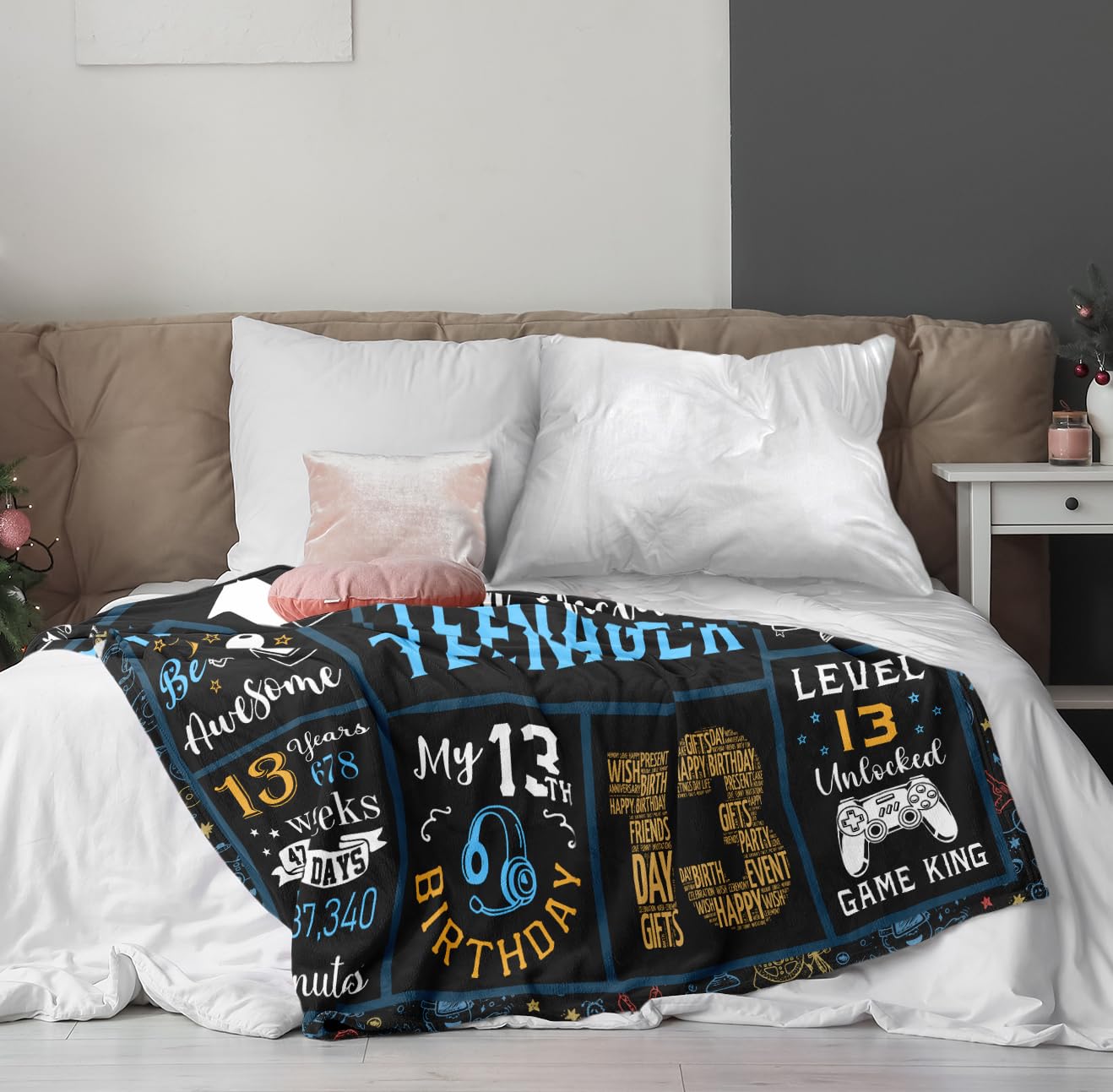 BEST CHOICE FOR 13 YEAR OLD BOY GIFTS: Turning thirteen is a milestone worth celebrating, marking the official transition into teenage years. Our birthday blanket, designed for boys who are going to be 13, is the perfect gift to celebrate their 13th birthday. With its cool design, it stands out as one of the coolest gifts for a 13-year-old boy.