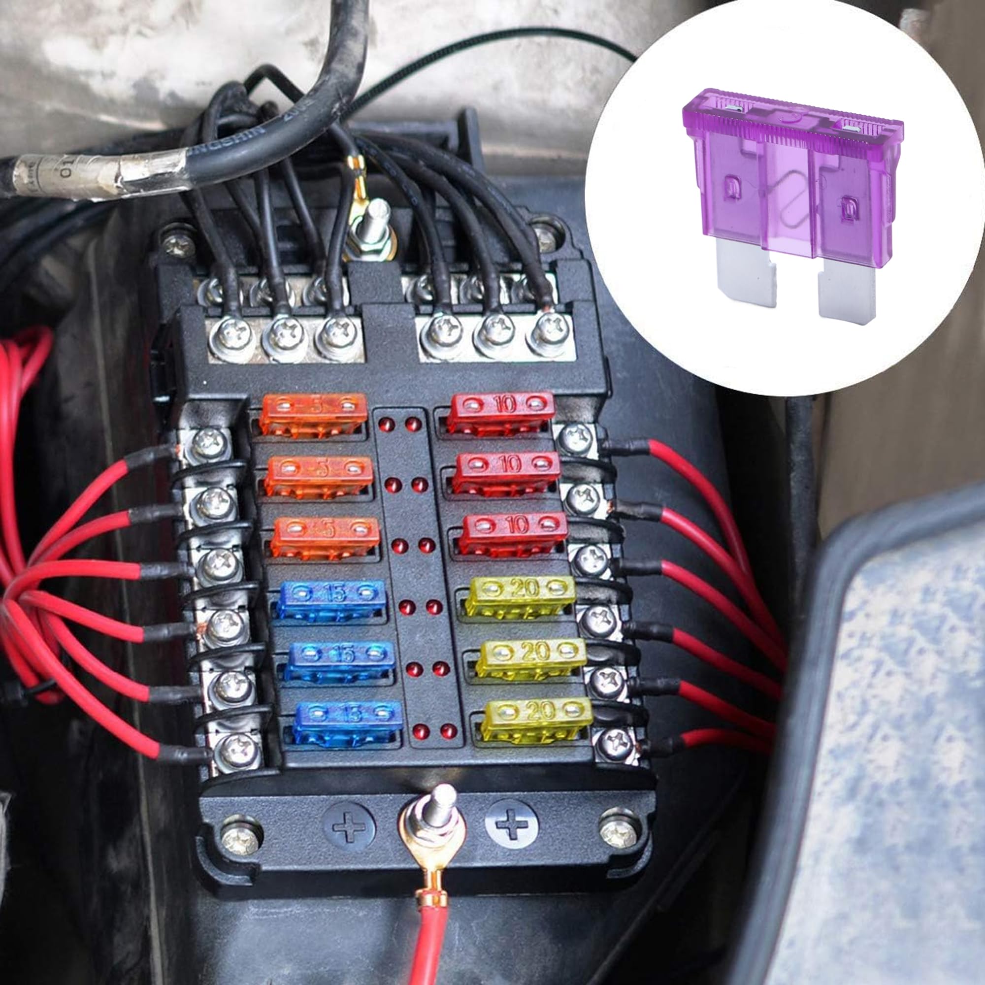 DURABLE - Terminals are constructed from tin-plated zinc for corrosion resistance and enhanced conductivity. Fuses made of premium materials, fast and precise fusing current to protect your vehicles and electrical devices from a short circuit and overload.