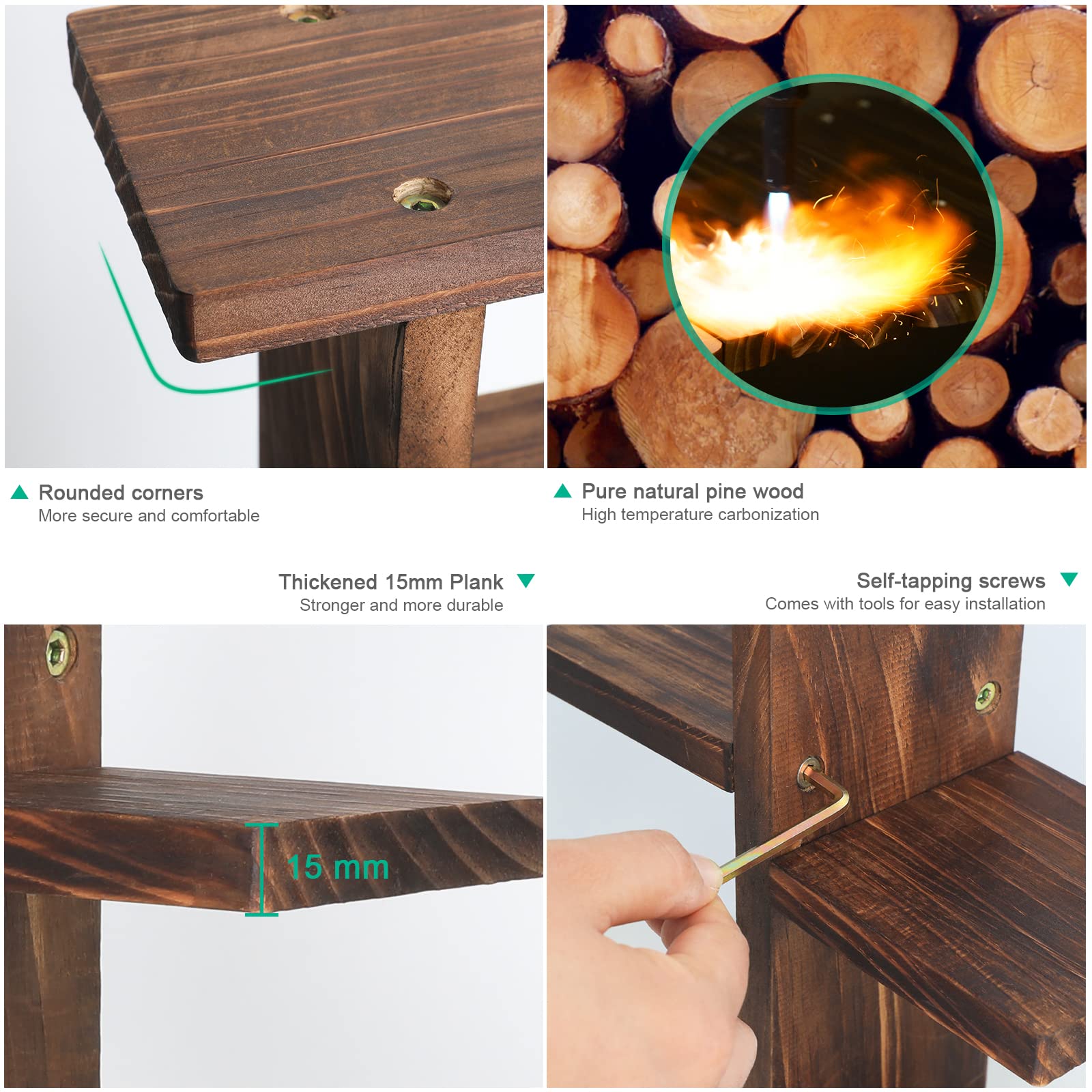 ✿ NATURAL MATERIAL - Our COOGOU desktop plant shelf is strong and durable, made of renewable pine wood, carbonized at 300 ℃, the water content of the windowsill plant holder is reduced by 50%, and the resistance to deformation is increased by 50% to achieve the compression function of resistance, corrosion resistance