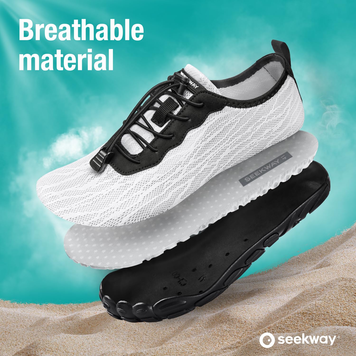 All-round Protection:Thick rubber soles and a toe cap keep your feet completely protected from sharp objects and provide great cushioning. The 3D non-slip treads provide exceptional grip even in slippery conditions. This makes it a great choice for outdoor sports.