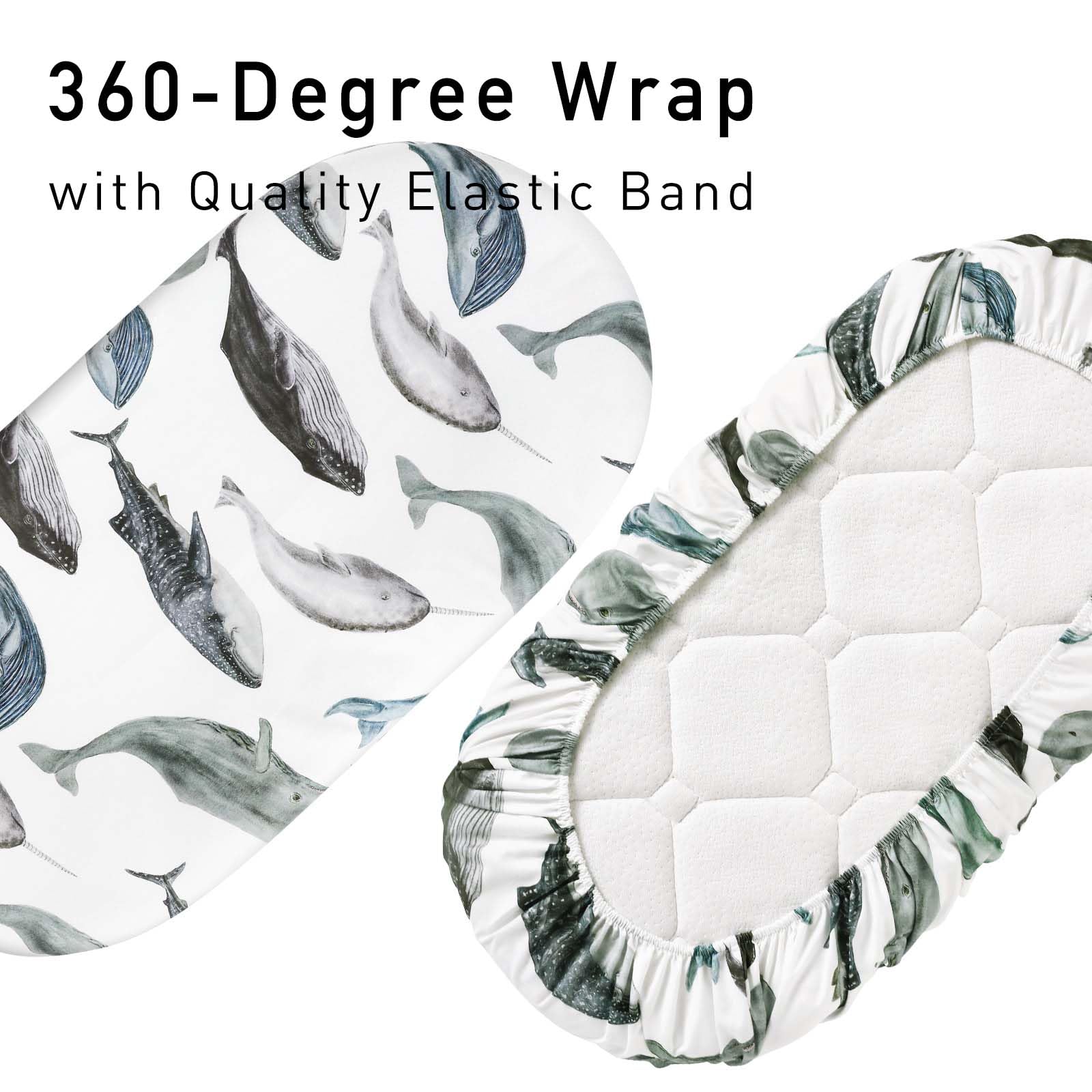 SUPER SOFT FABRIC: Our baby bedding bassinet sheets are made of soft and breathable fabric that best fits the standard bassinet crib. The elastic band surrounds the mattress, so mothers will not worry that it will slip away, creating a comfortable and stable sleeping space for the baby. Rest assured, every product meets the OEKO-TEX Standard 100 and is safe for babies