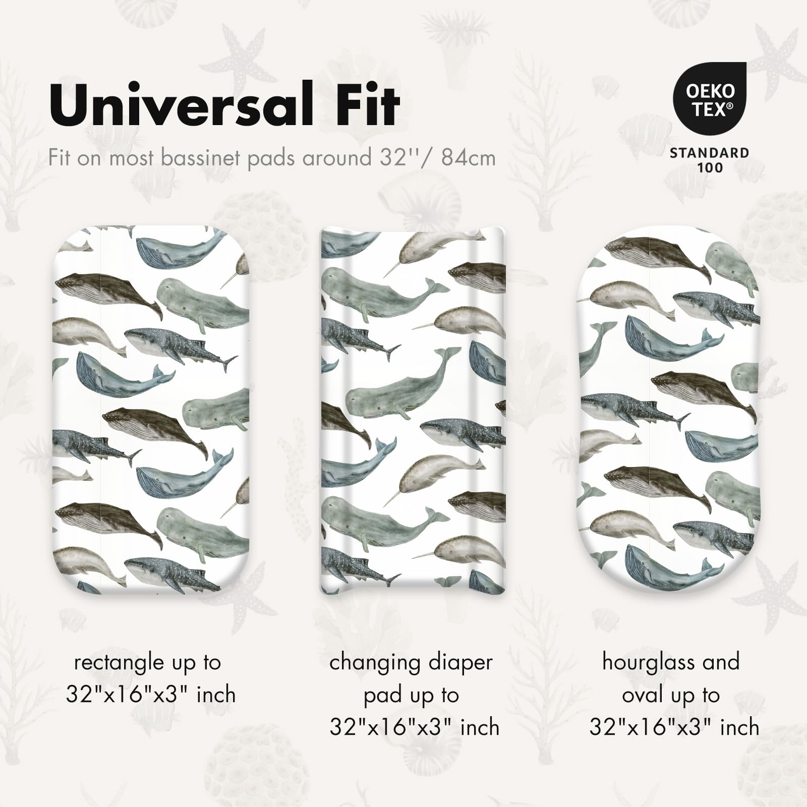 ONE SIZE FITS ALL (32"X16"X3"): Classic universal size. Not too big, not too small, smooth and snug to fit almost all bassinets, loungers, cradles, and co-sleepers' standard, oval, round, rectangle, and hourglass-shaped mattresses