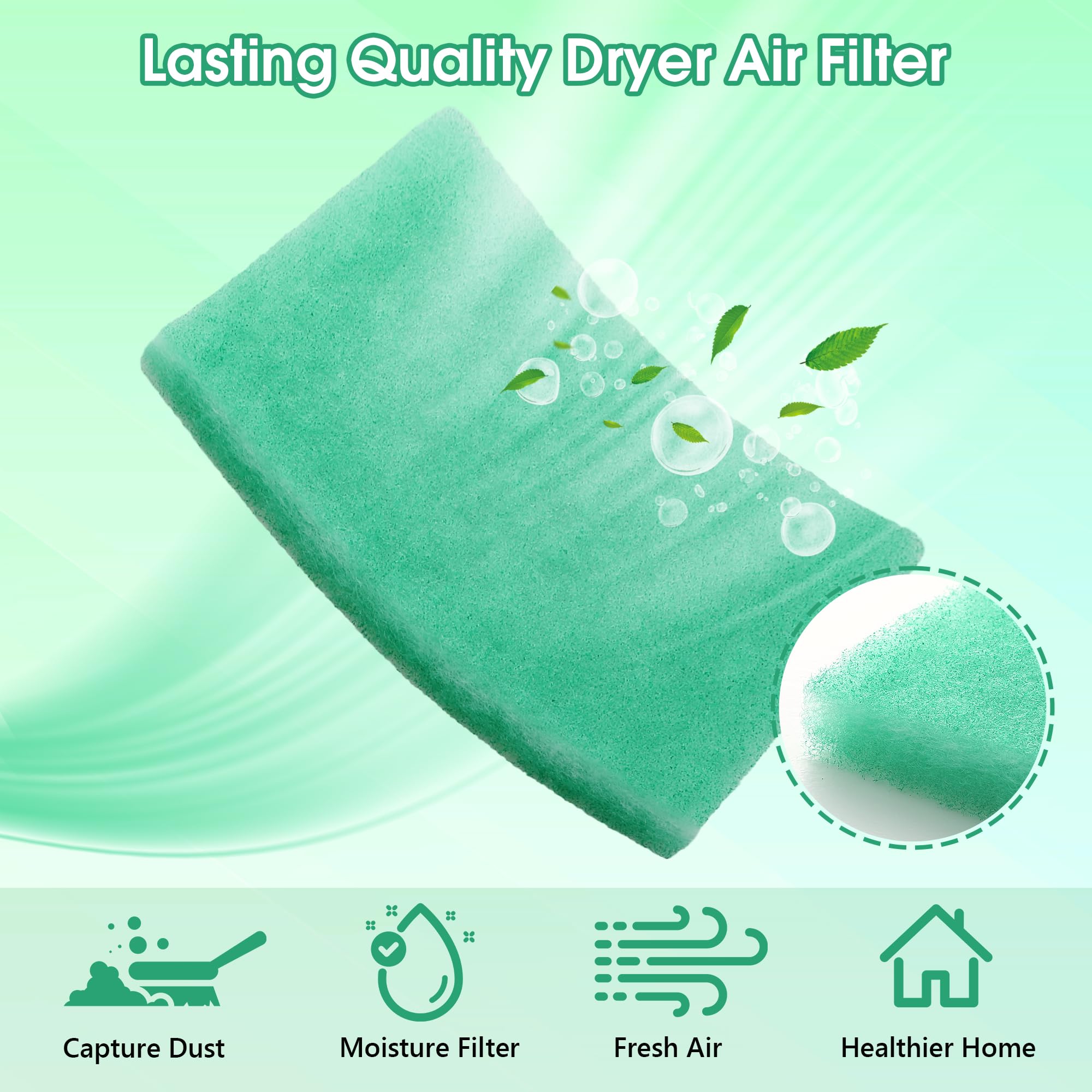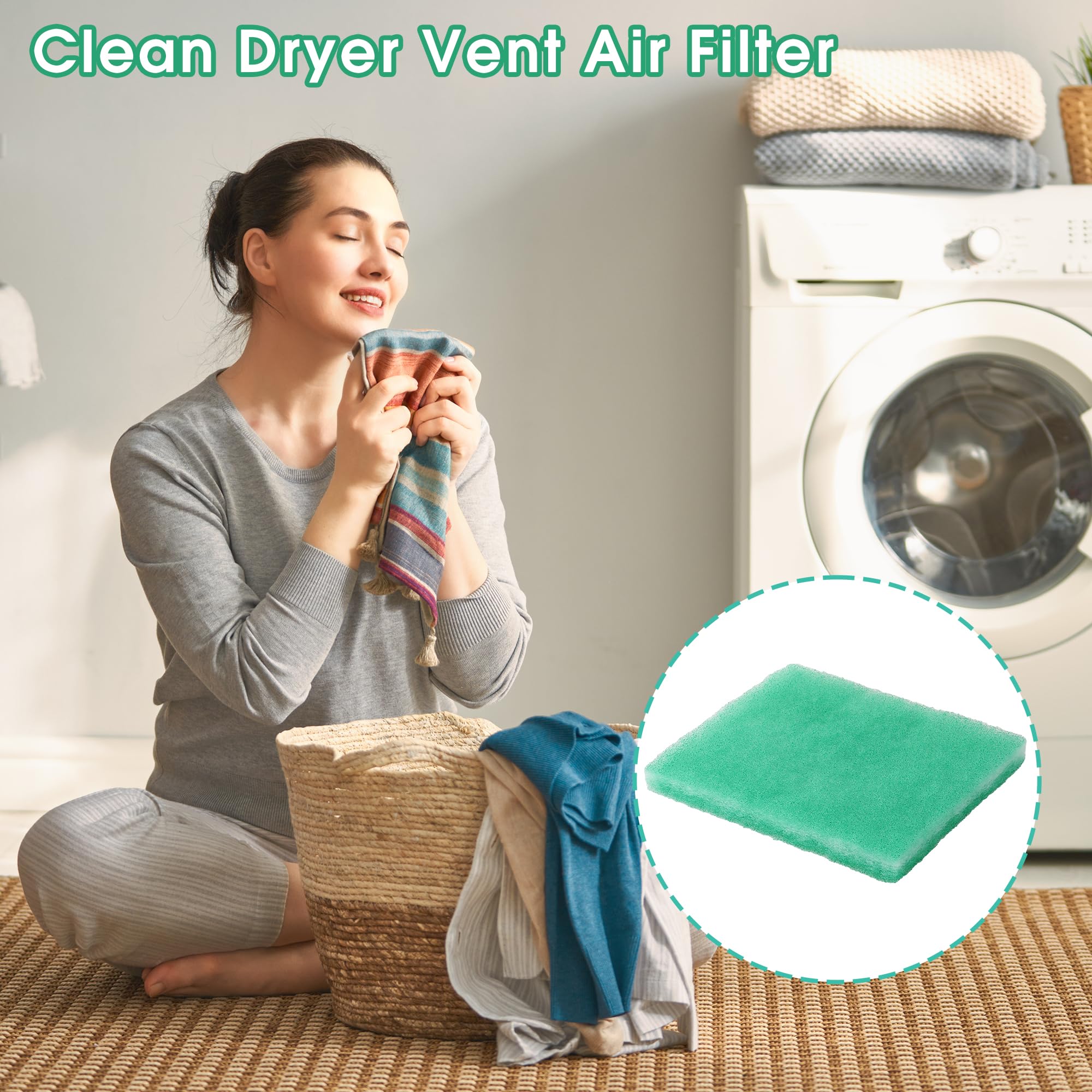 Features: Crafted from polyester material, dryer filter replacement, compatible with BetterVent dryer vent filter, offers efficient lint capture, reduced fire risk, and improved indoor air quality. With washable and reusable filters, convenient indoor venting, and universal compatibility, it enjoys easy installation and maintenance. Specifications: Product: dryer vent filter replacement Compatibility: compatible with BetterVent indoor dryer vent Material: polyester Color: green Item Package Quantity: 12 Size: 8.27 x 7.01 x 0.98 inches/ 21 x 17.8 x 2.5 cm Thickness: 2.5 cm Compatible Devices: air cleaner Package includes: 12 x Dryer vent filter replacements Notes: Manual measurement, please allow slight errors on size. The color may exist a slight difference due to different screen displays. The brands related above are only for purposes of demonstrating compatibility, not use as trademarks, our trademark is Dreyoo.