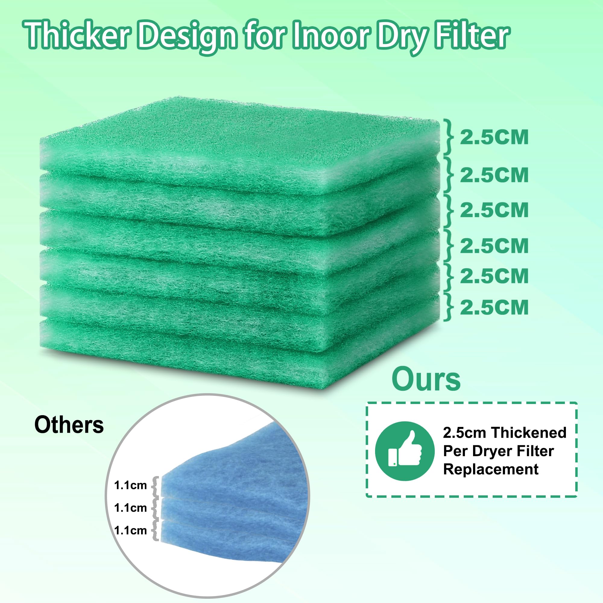 Well Designed Thickness: 2.5 cm thickness, the increased filtration capacity of a dryer vent replacement provides a larger surface area for capturing lint, dust, moisture and other particles from the dryer exhaust, preventing overheating and ensuring efficient dryer operation