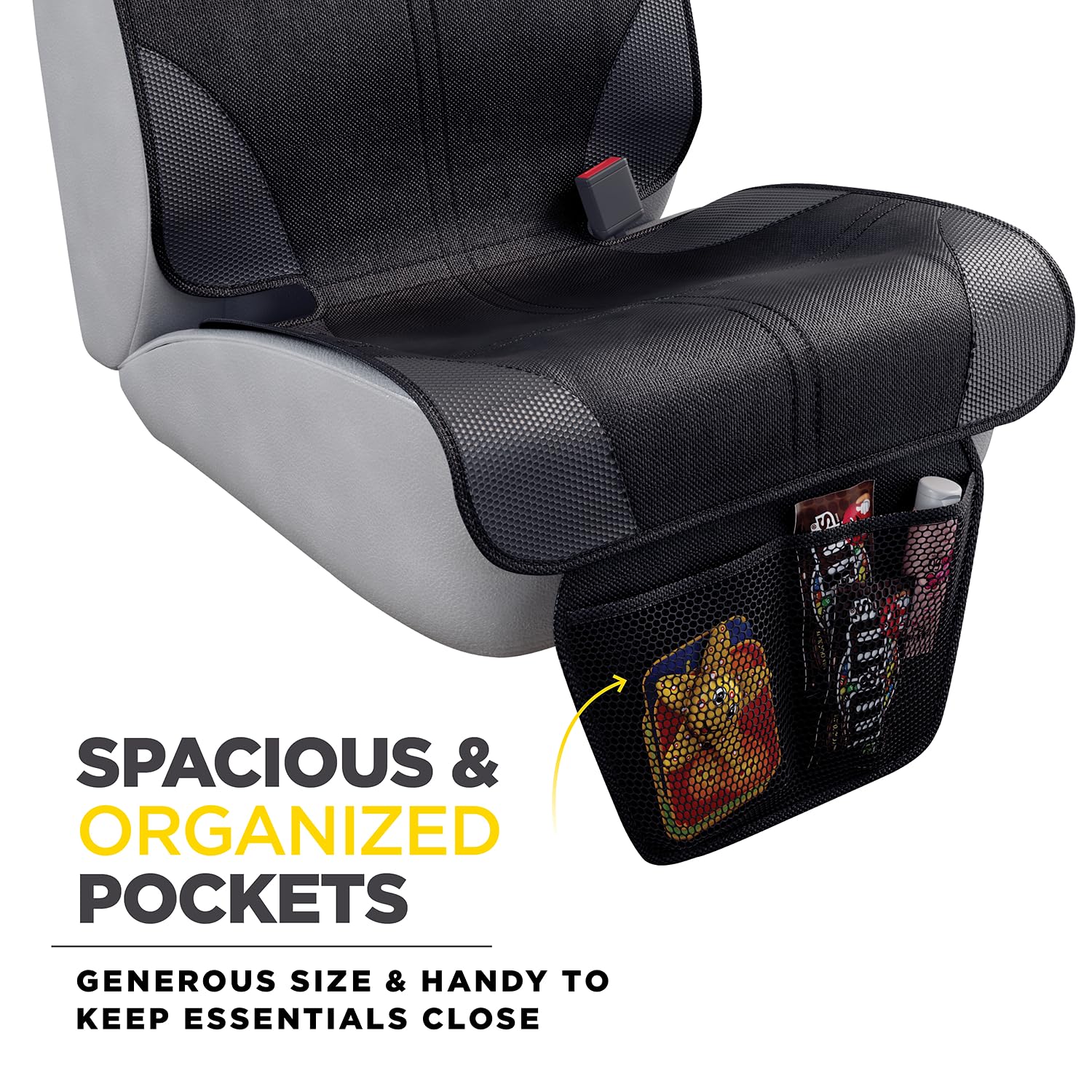 ✓ Perfectly Sized, Added Pockets - Our Car Seat Protection for Baby Carseat is designed to accommodate Forward or Rear-Facing Car Seats and Booster Seats in a wide range of vehicles, including cars, trucks, sedans, SUVs, and vans. Additionally, the mesh pockets beneath the baby's feet allow you to conveniently store your child's car accessories travel essentials such as toys, drink bottles, and wipes while on the road.