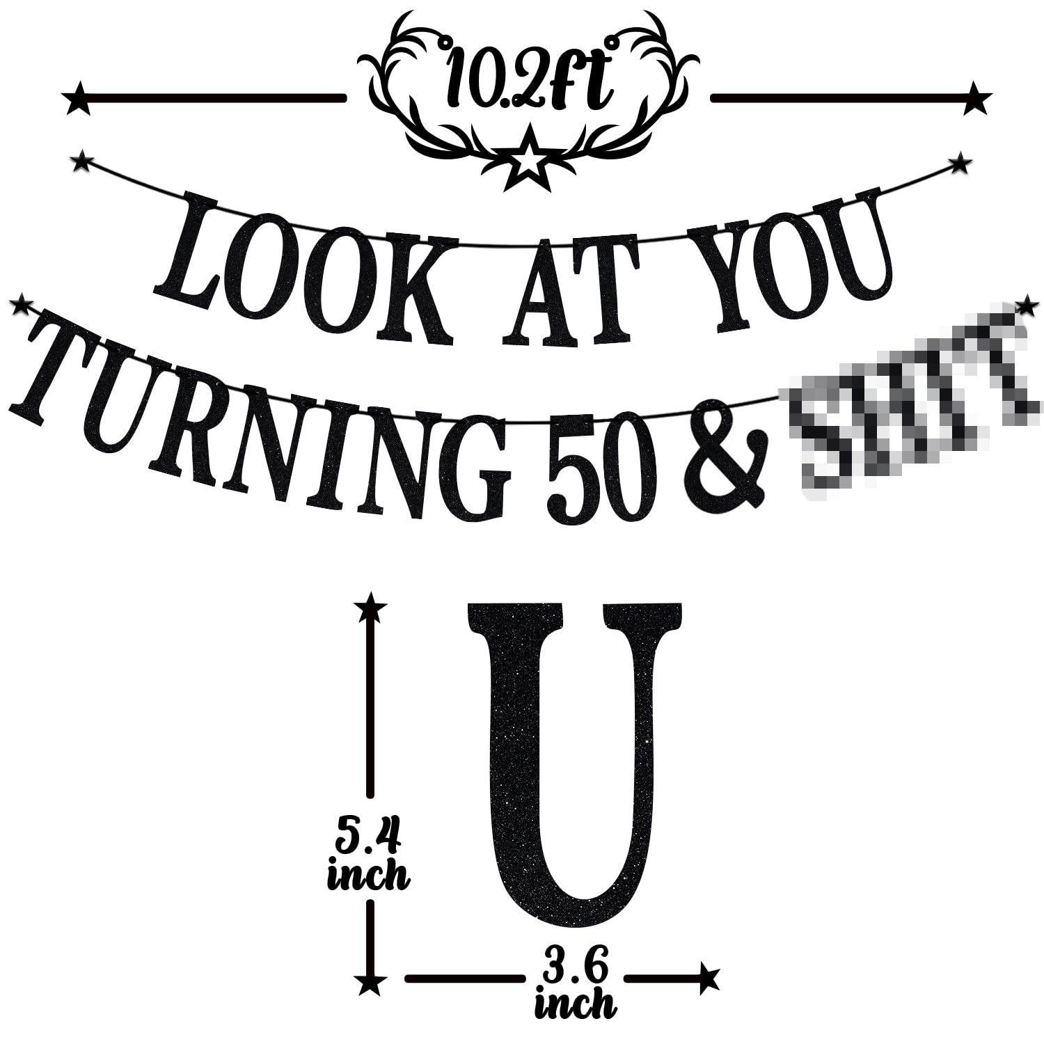 Received included: Letter cards spelling the phrase "Look at You Turning 50 & Sh*t". Awesome decorations: It is very suitable for the 50th Birthday party. Special party decorations can add an enjoyable and active atmosphere to these scenes, leaving a happy and unforgettable memory. High quality: Banners are made of glitter premium cardpaper. They are rigid and reusable. Easy to DIY: The card and the rope are separate, you only need to spend a little time to assemble. Choose us and believe us: We support the concept of customer first and product first. If the quality or damage occurs during transportation, we will solve it.