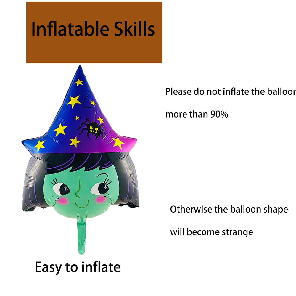 【Unique Design】:These balloons are designed with a Cute Witch shape, bright colors, and vivid effects, making your party more beautiful and moving. And easy to use. Attention: Do not over-inflate, and do not over-pressurize, it is recommended to inflate by 70%.