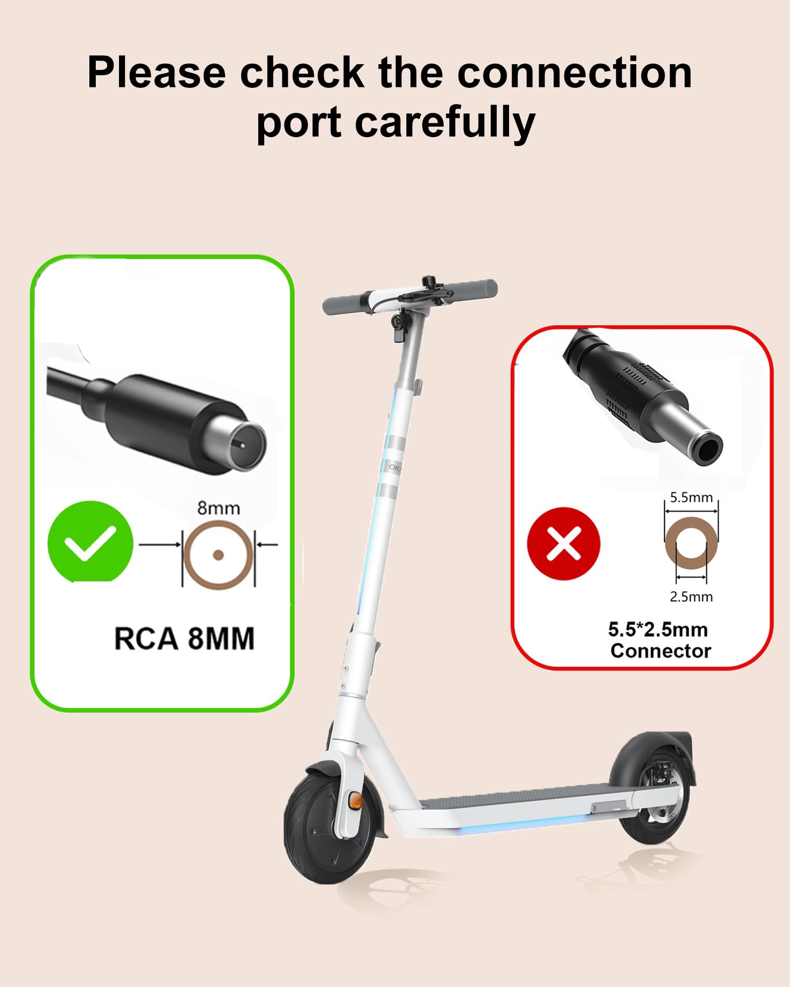 Please Note: NOT 3-Prong ❌ NOT for 24V ❌ and 25.2V ❌ and 29.4V ❌ version. NOT for 48V ❌ and 54.6V ❌ version. That the "Hiboy" "Okai Neon" available in a number of different Models Number and Connectors. Please Check For Compatibility With Your Unit.