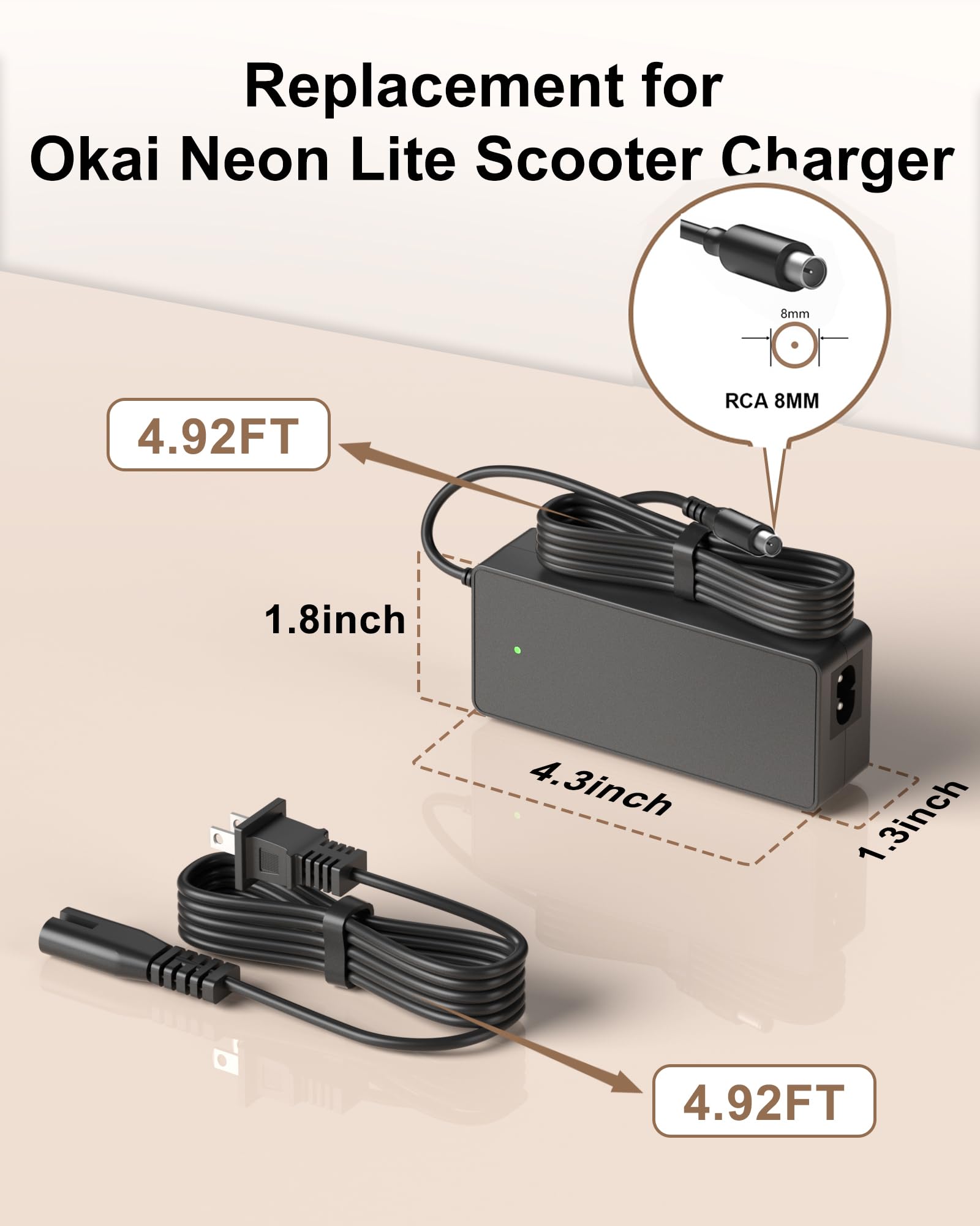 Replacement for Okai Neon Lite Electric Scooter Charger Compatible with: Okai Neon Lite EA10 ES10 ES20 ES50B Scooter; AovoPro M365 Pro ES60 EW6 ES80, Hiboy S2R, YADEA KS5 Pro KS1 KS3, for XIAOMI MI M365 Pro 1S Pro2, Bird Air M365, Macwheel MX1 MX2 MX3 MX Electric Scooter Power Supply Battery Charger.