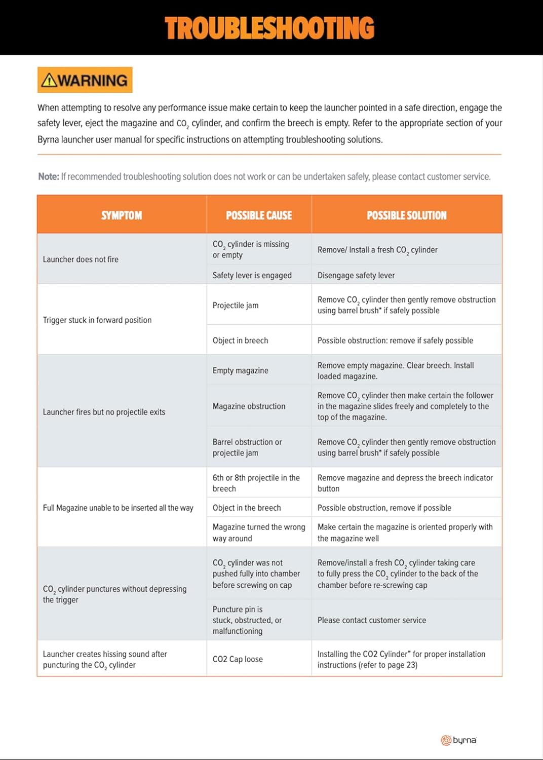 Patented Pull-pierce Technology: CO2 is stored in the launcher unpunctured until the first trigger pull. On first trigger pull the CO2 is punctured and a projectile is launched simultaneously.