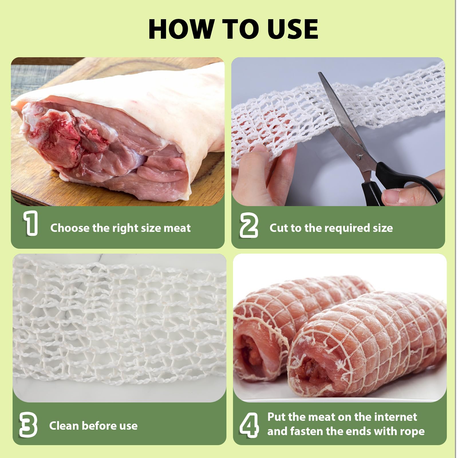 Versatile Meat Processing: Ideal stretch meshfor sausages, pork loin, roast beef, trotters and more. This meat smoked net simplifies brewing, boiling, roasting, and various meat products