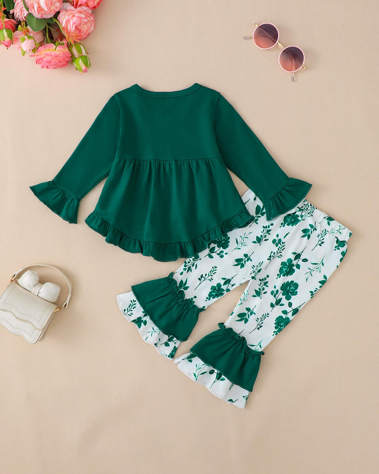 Package Included:1 piece of long sleeve shirts top for kids and 1 piece of full lenth flare bell bottom leggings pants would be included in the package.Perfect to be a baby girl 1 2 3 4 5 year old toddler girl birthday gifts!