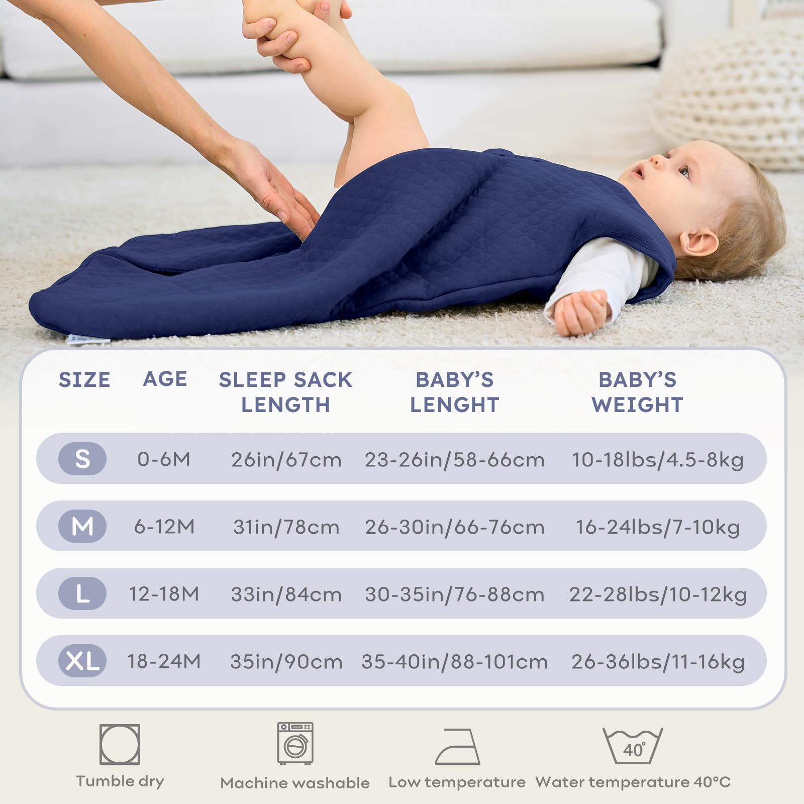 【Warm&Breathable】The 2.5 tog baby sleep sack 6-12 months is delicately made of 100% cotton at outer layer, which could quite well fit for air flow at every winter night. With its premium cotton inner layer and microfiber filling, your baby would be prioritized by a sleep in mom's arms. A sound sleep for your baby is indispensible for a family.