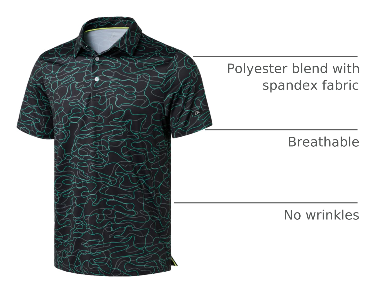 Stretchy Golf Shirt: This men's polo shirts use polyester blend with spandex fabric, which offers a soft smooth feel with plenty of stretch to let you swing and flex without restriction. While it is great durability that keeps it structure even after you wash it. No wrinkles, colorfast, shrink free, easy clean.