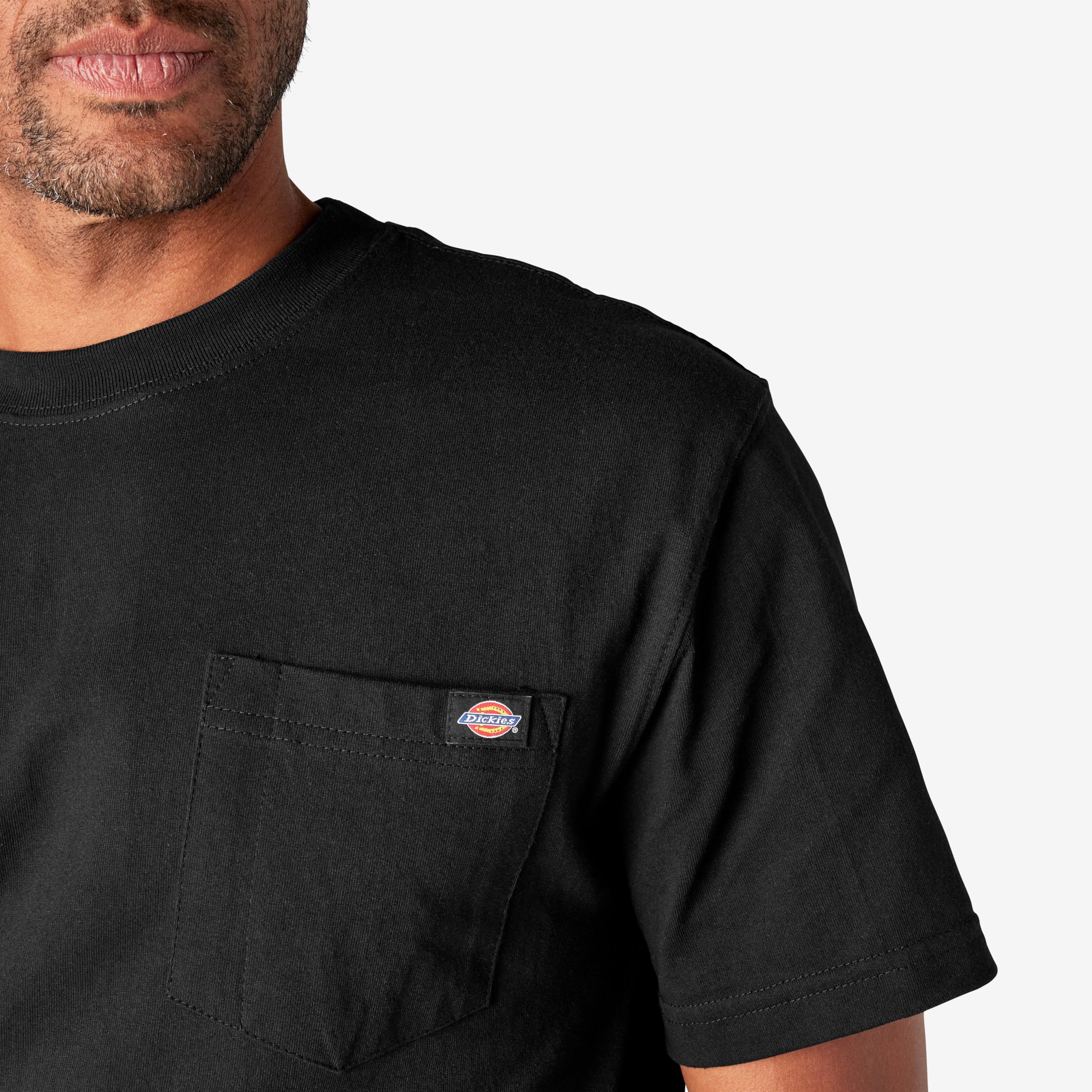 Description Hard-working men everywhere will be comfortable in the Dickies' Short sleeve heavyweight crew neck t-shirt. Made of a jersey knit material, this heavyweight cotton blend is durable, and designed with cotton comfort. On top of the fabric durability, The taped neck and shoulder seams up the ante on strength for longer wear.