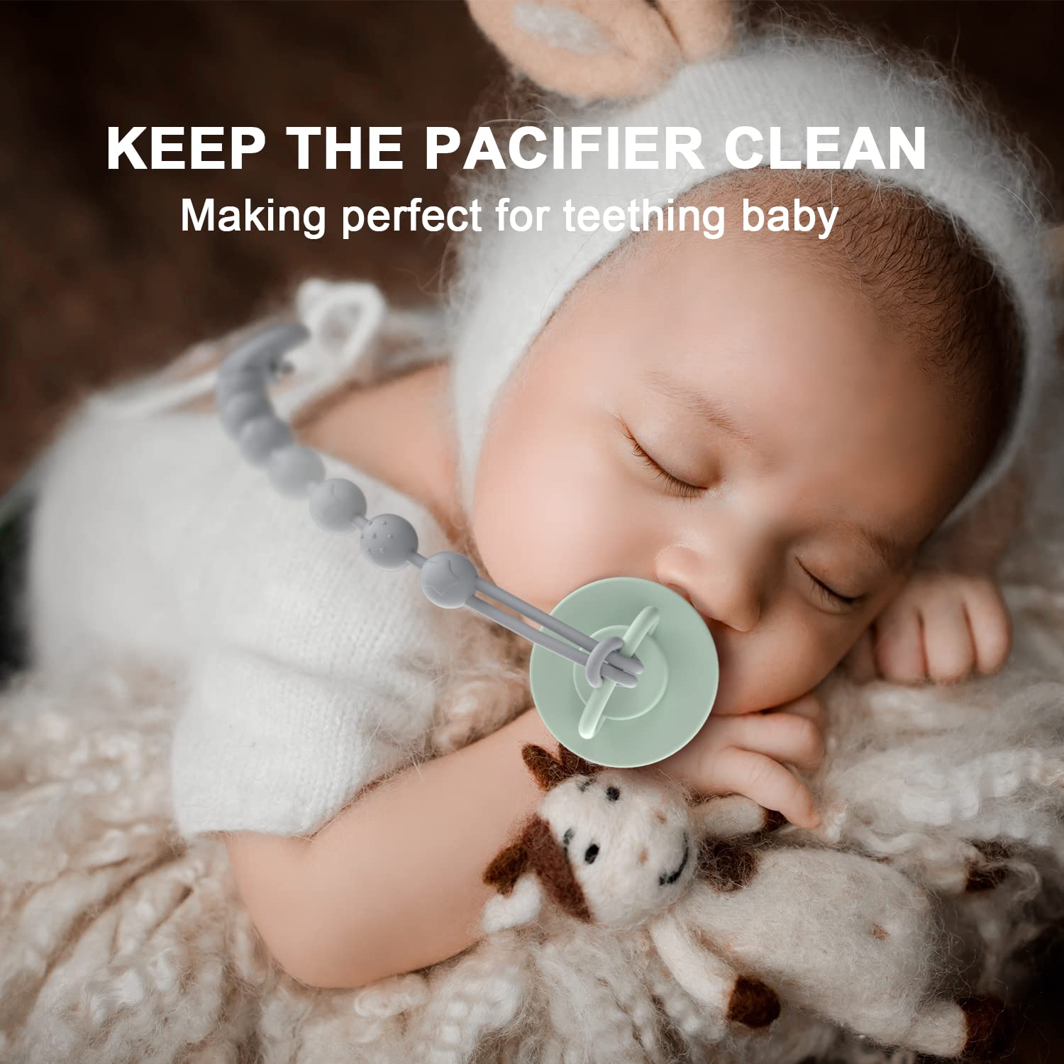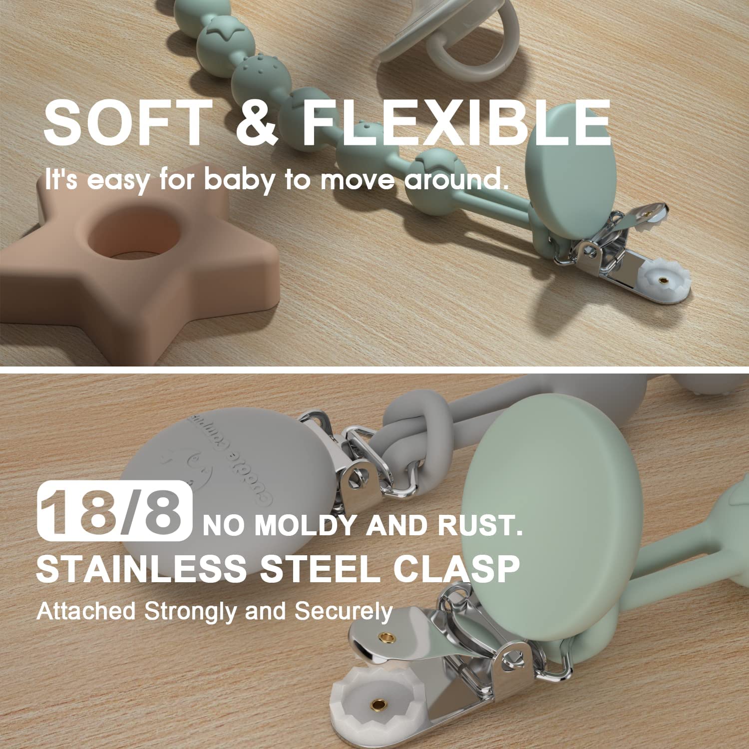 FOOD GRADE SILICONE: The beads of our pacifier clip are made from 100% pure food-grade silicone—a material we carefully pick for its dependable safety, letting you use the clip with total ease