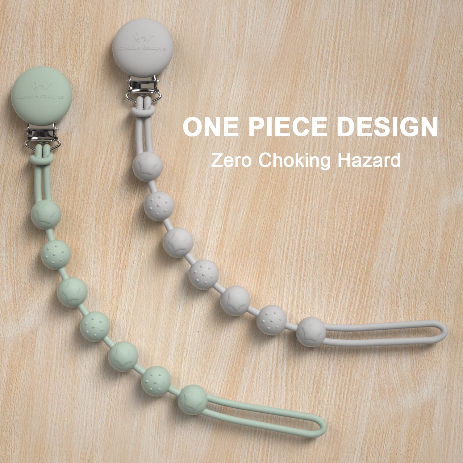 UNIQUE ONE PIECE DESIGN: We’ve taken our popular pacifier holder to the next level by updating it with a one-piece silicone core. No more worrying about parts falling apart—this seamless design stays sturdy, and best of all, it eliminates any choking hazard, keeping your little one safe